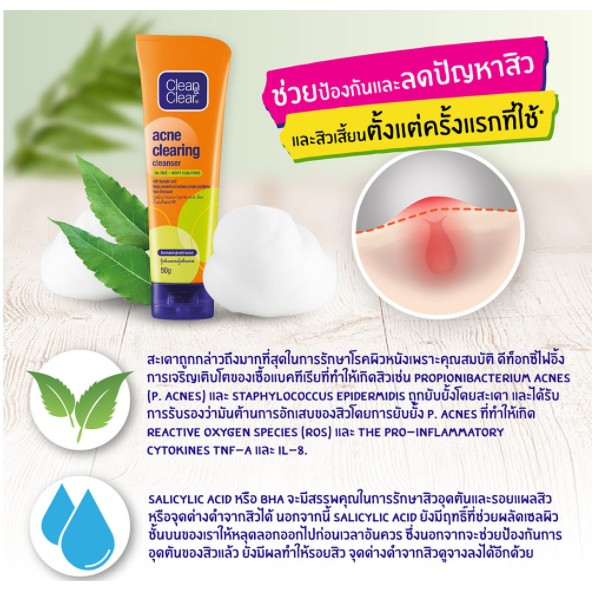 คลีน แอนด์ เคลียร์ Clean & Clear (100/80 กรัม) ผลิตภัณฑ์ล้างหน้า ช่วยลดปัญหาสิวตั้งแต่ครั้งแรกที่ใช้ NLM
