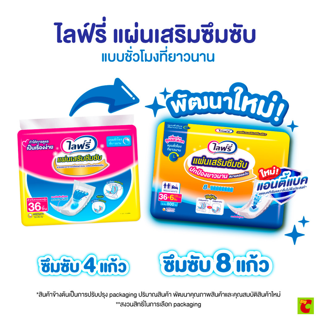 ไลฟ์รี่ แผ่นเสริมซึมซับแบบซูเปอร์ รองรับชั่วโมงที่ยาวนาน 36 ชิ้น
