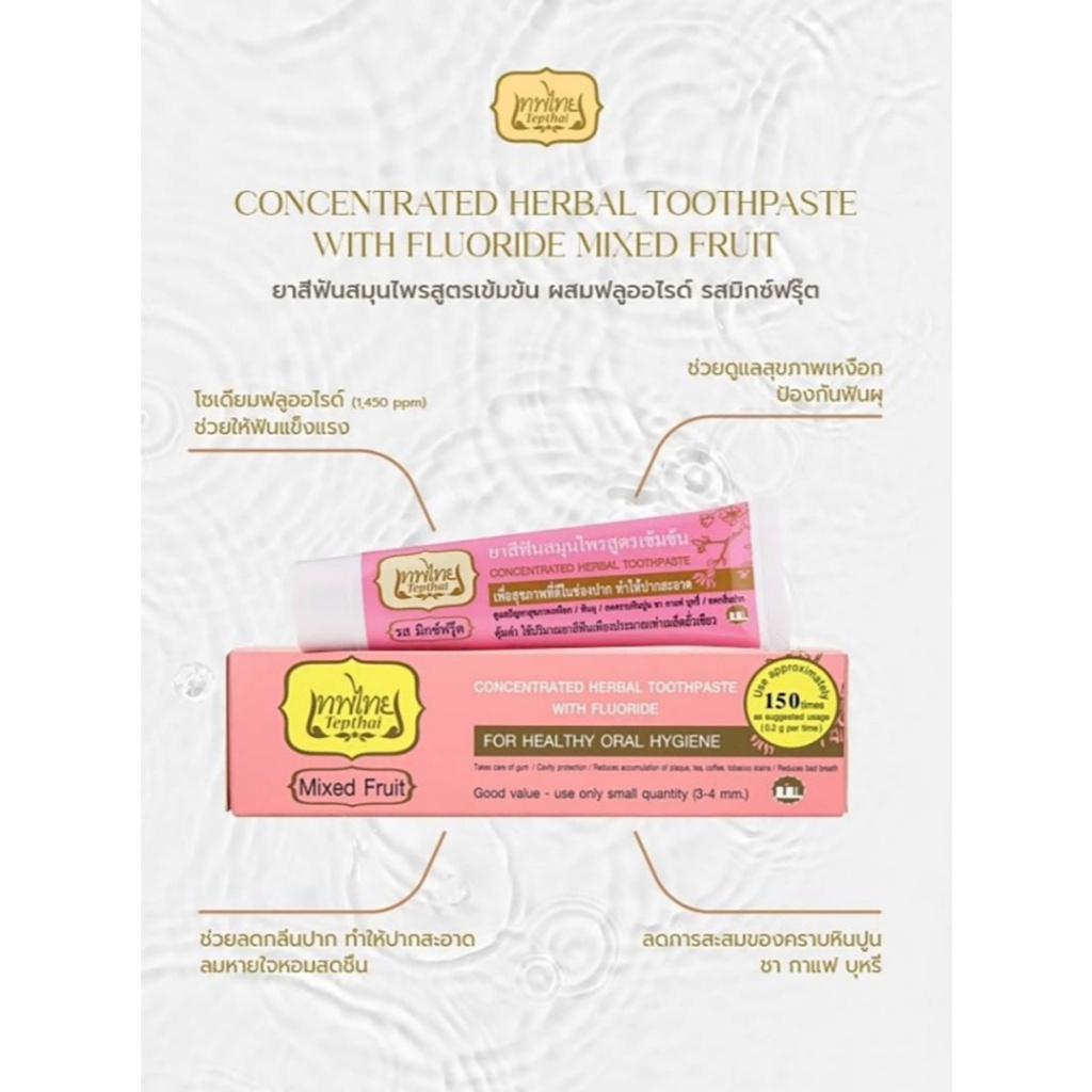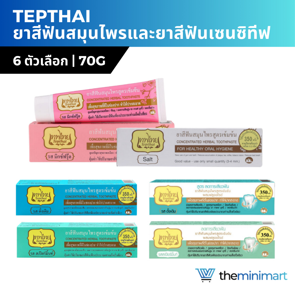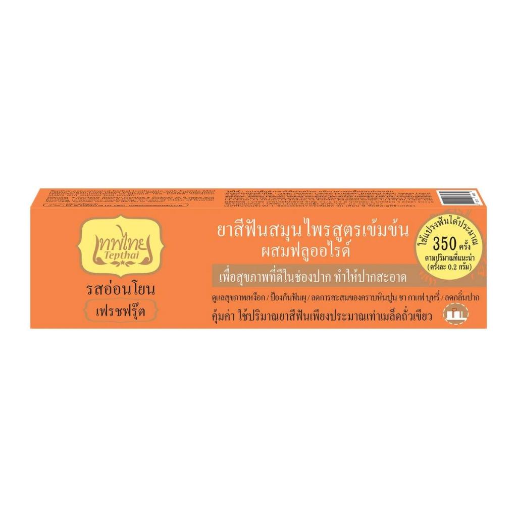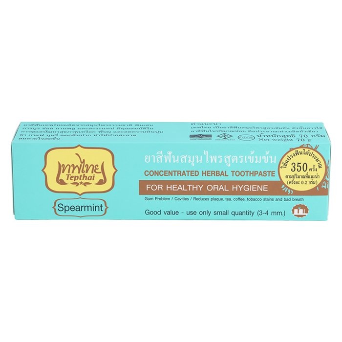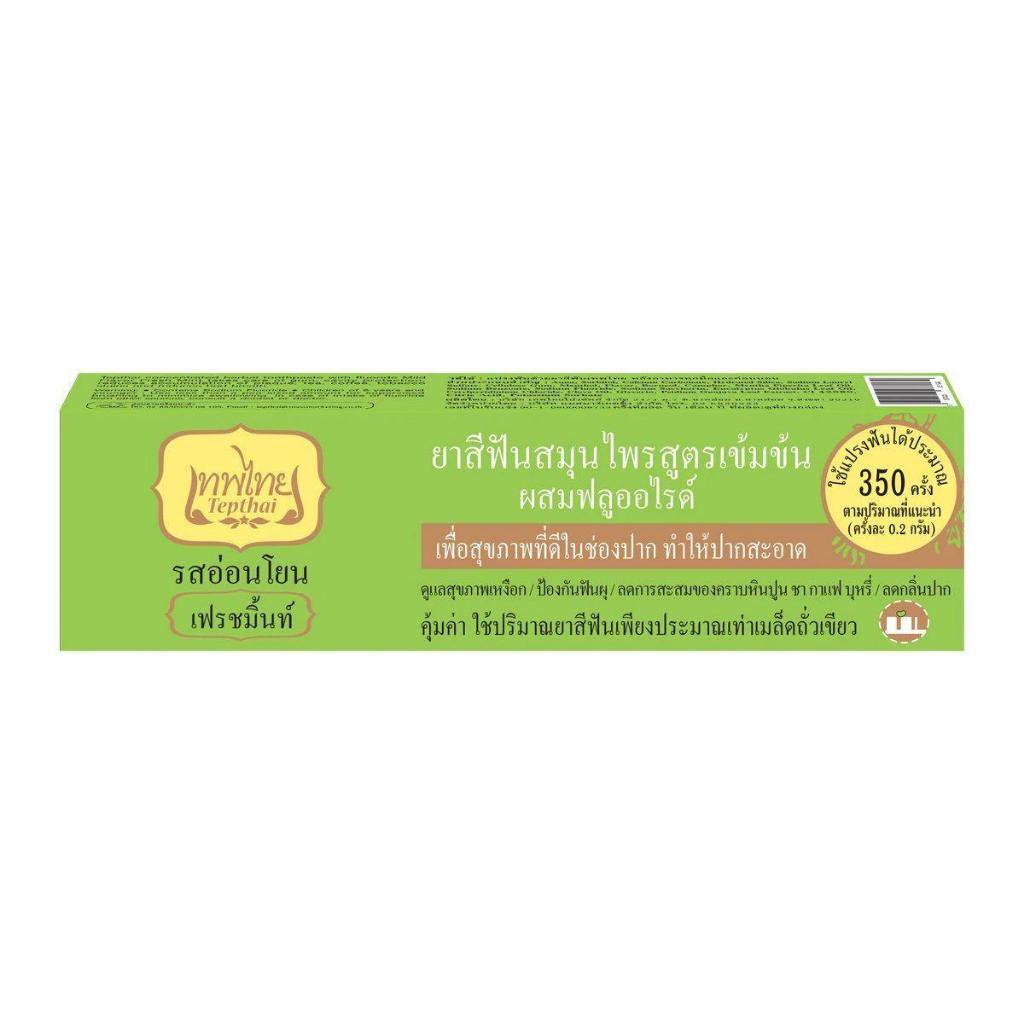 Tepthai เทพไทย ยาสีฟันสมุนไพรสูตรเข้มข้น 70กรัม ผสมฟลูออไรด์ ลดการเสียวฟัน รสดั้งเดิม รสสเปียร์มิ้นท์