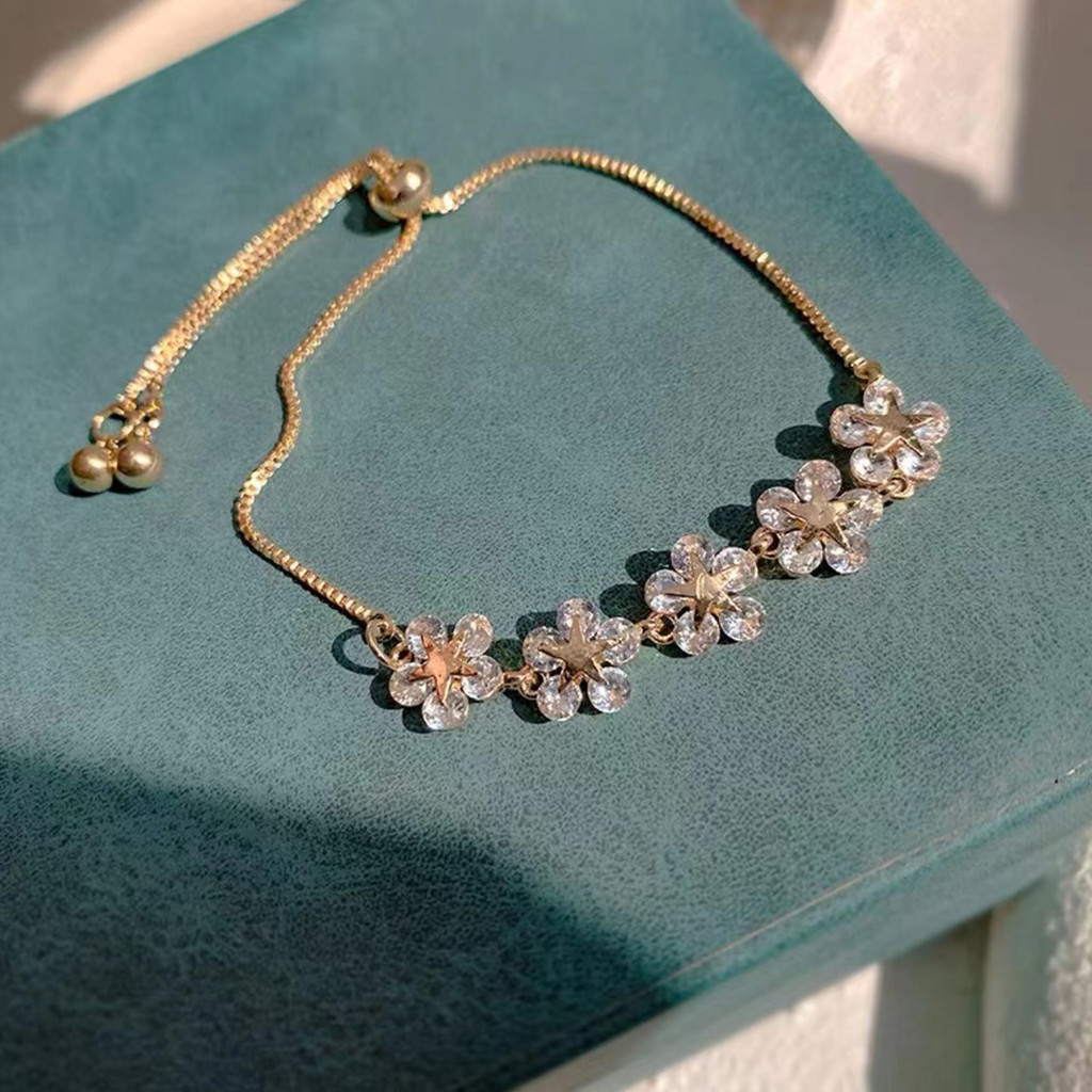 โลหะผสมสไตล์โบฮีเมียนดอกไม้ของผู้หญิงพร้อมการตกแต่ง พลอยเทียม สร้อยข้อมือแบบปรับได้สไตล์เรียบง่าย
