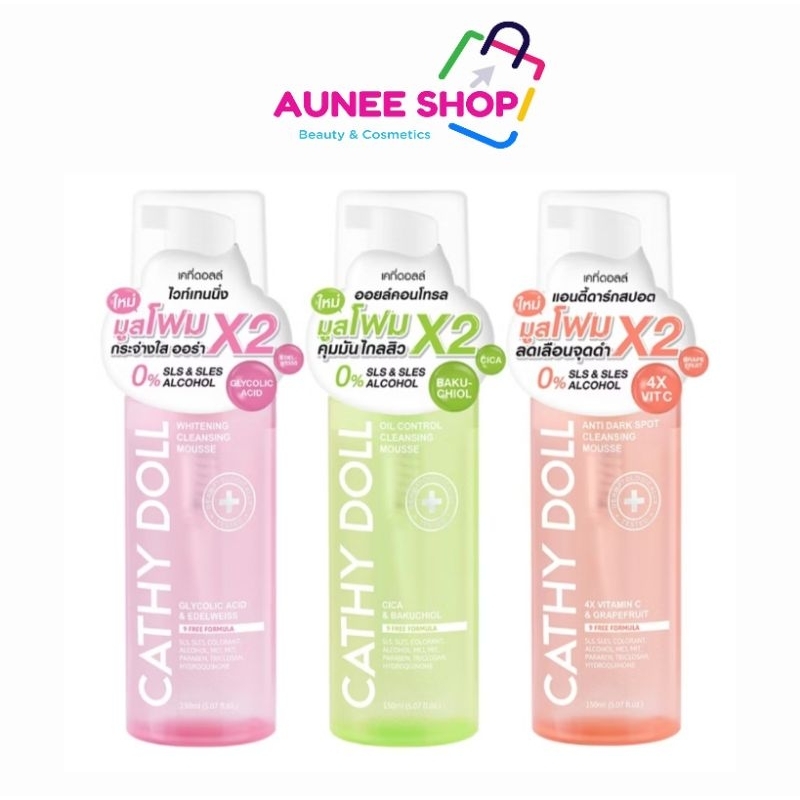 ส่งฟรี/มีไลฟ์ (ขวด)Cathy Doll คลีนซิ่งมูส 150mlเคที่ดอลล์มี 3 สูตรให้เลือก สูตรWhitening,Oil Control,Anti Darkspot