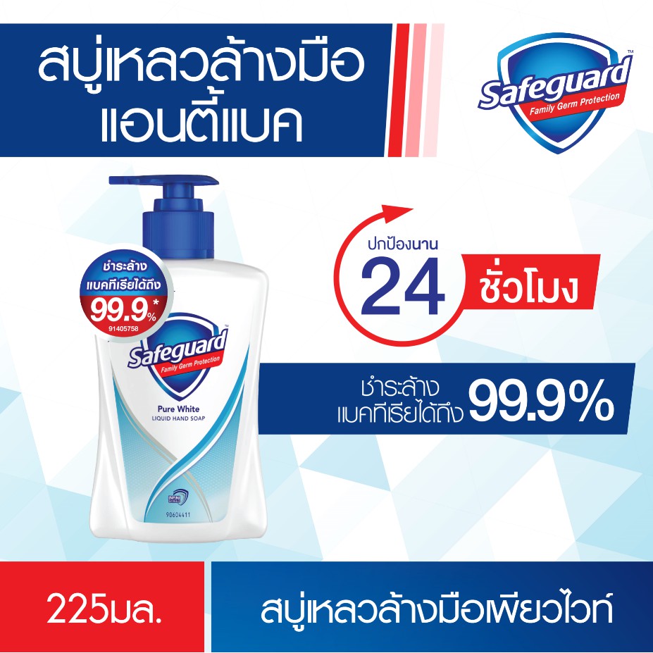 Safeguard สบู่แอนตี้แบค เซฟการ์ด เพียว ไวท์ ลิควิด แฮนด์ โซป ขนาด 225 มล. (แบบขวด)