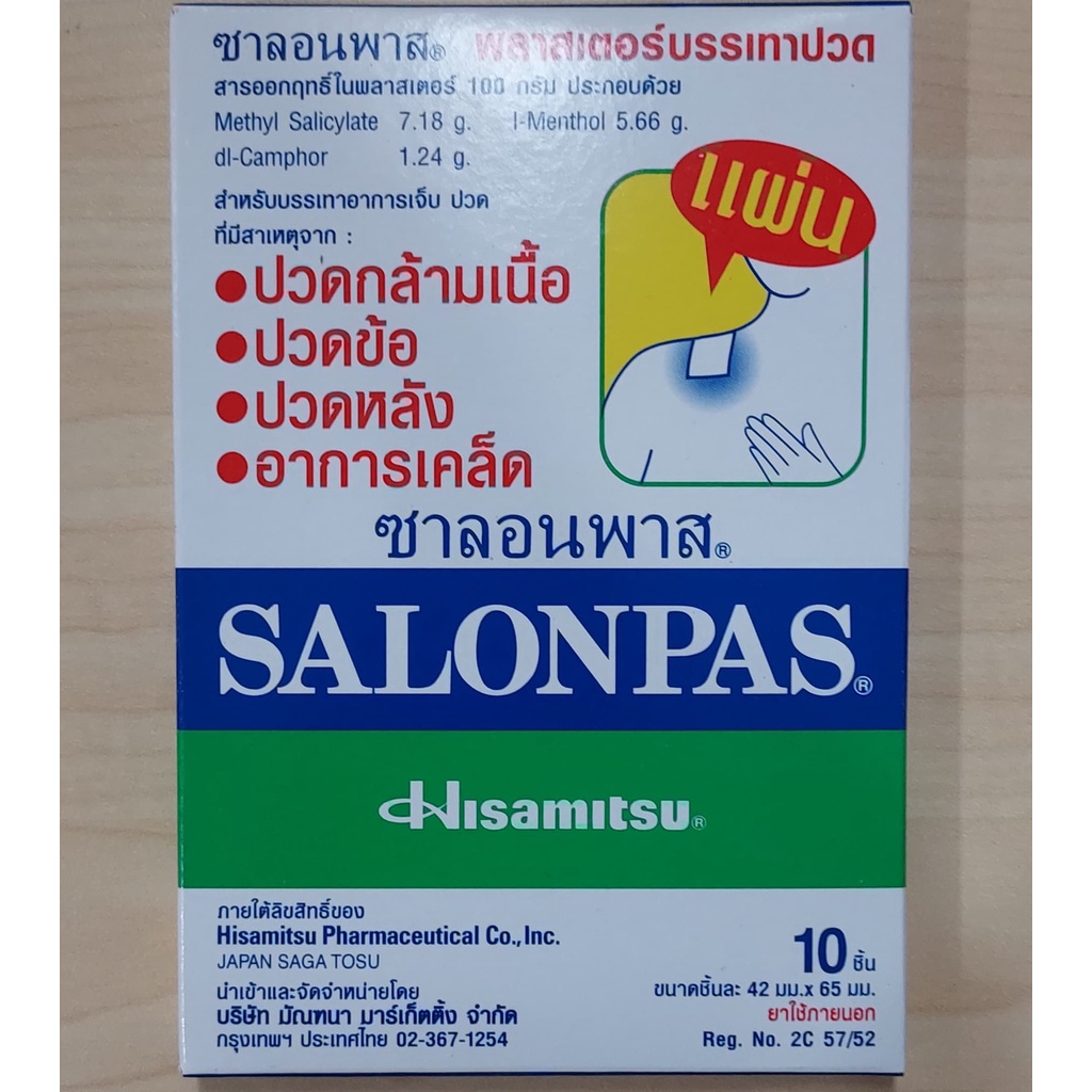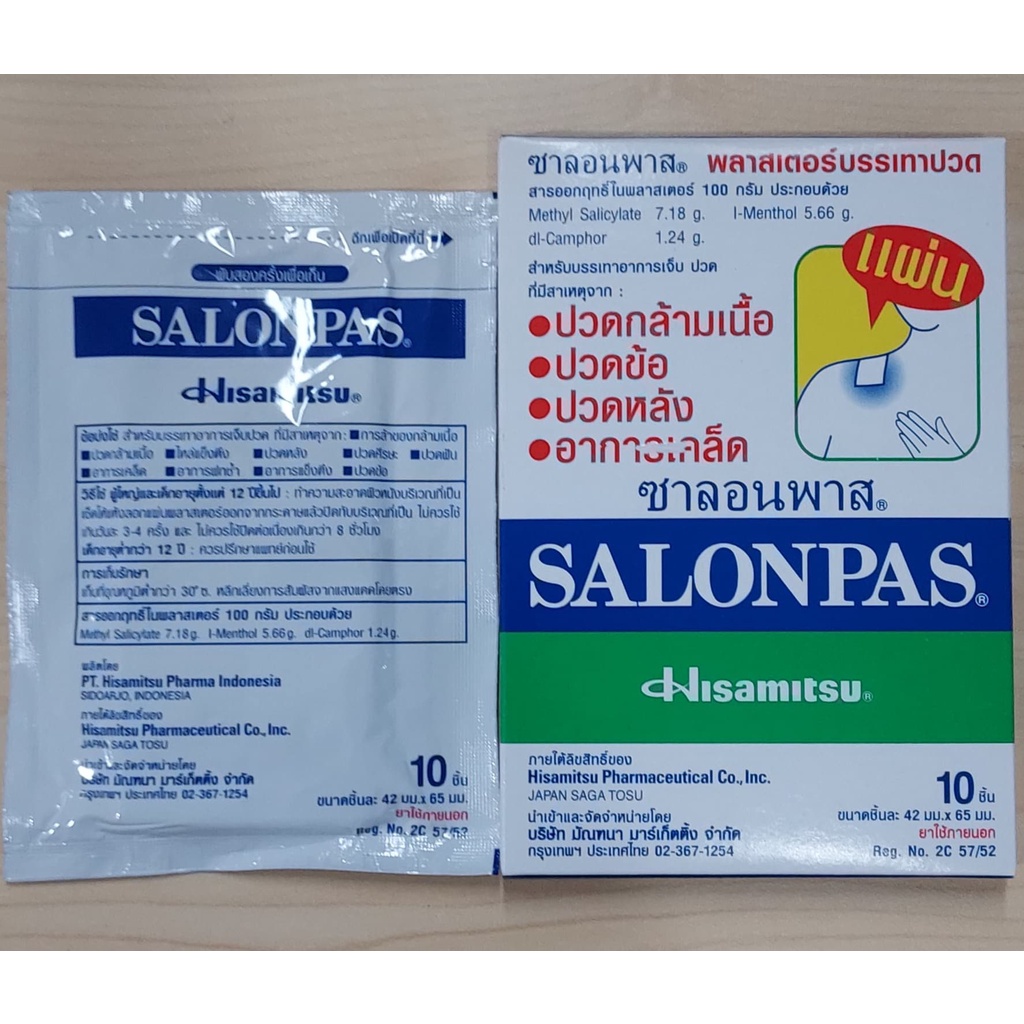 Salonpas ซาลอนพาส แผ่นแปะบรรเทาปวด 42 มม. x 65 มม. 10 แผ่น/กล่อง แก้ปวด พลาสเตอร์บรรเทาปวด