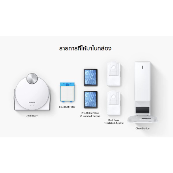 Samsung หุ่นยนต์ดูดฝุ่น Jet Bot AI+ รุ่น VR50T95735W/ST กำ ลังดูด 30 วัตต์