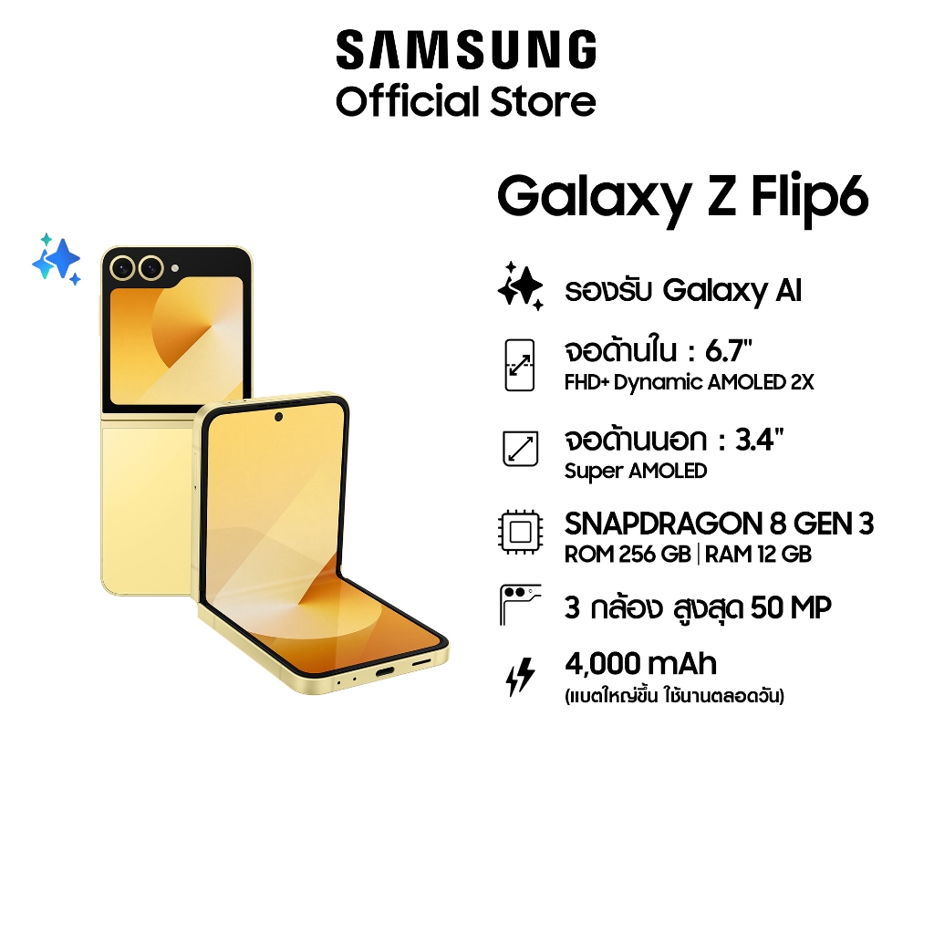 Samsung Galaxy Z Flip6 โทรศัพท์ AI 5G กล้อง 50MP ความจุ256GB