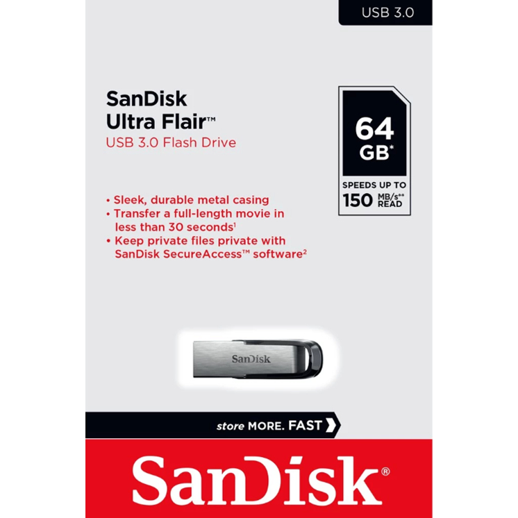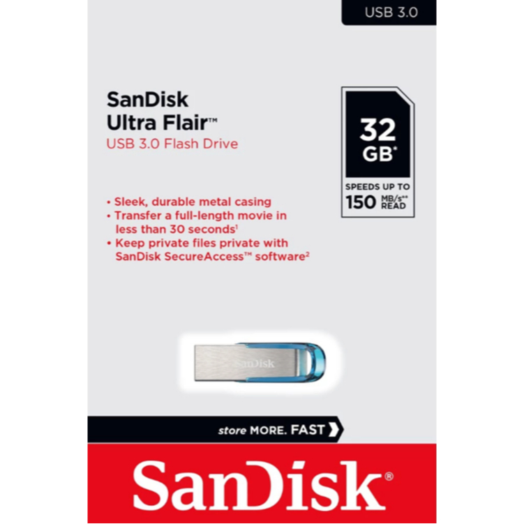 SanDisk Ultra Flair USB 3.0 B 150MB-Speed - 32GB, Blue / 64GB ฺBlack / 256GB