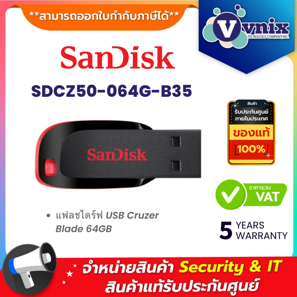 SANDISK (SDCZ50-064G-B35) FLASH DRIVE CRUZER BLADE 64GB BLACK USB 2.0 รับประกัน 5 ปี By Vnix Group