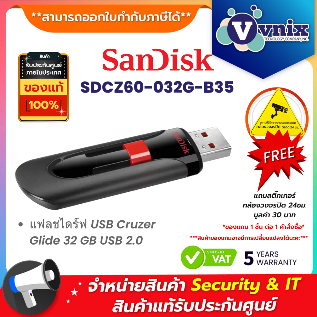 Sandisk SDCZ60-032G-B35 แฟลชไดร์ฟ USB Cruzer Glide 32 GB USB 2.0 By Vnix Group