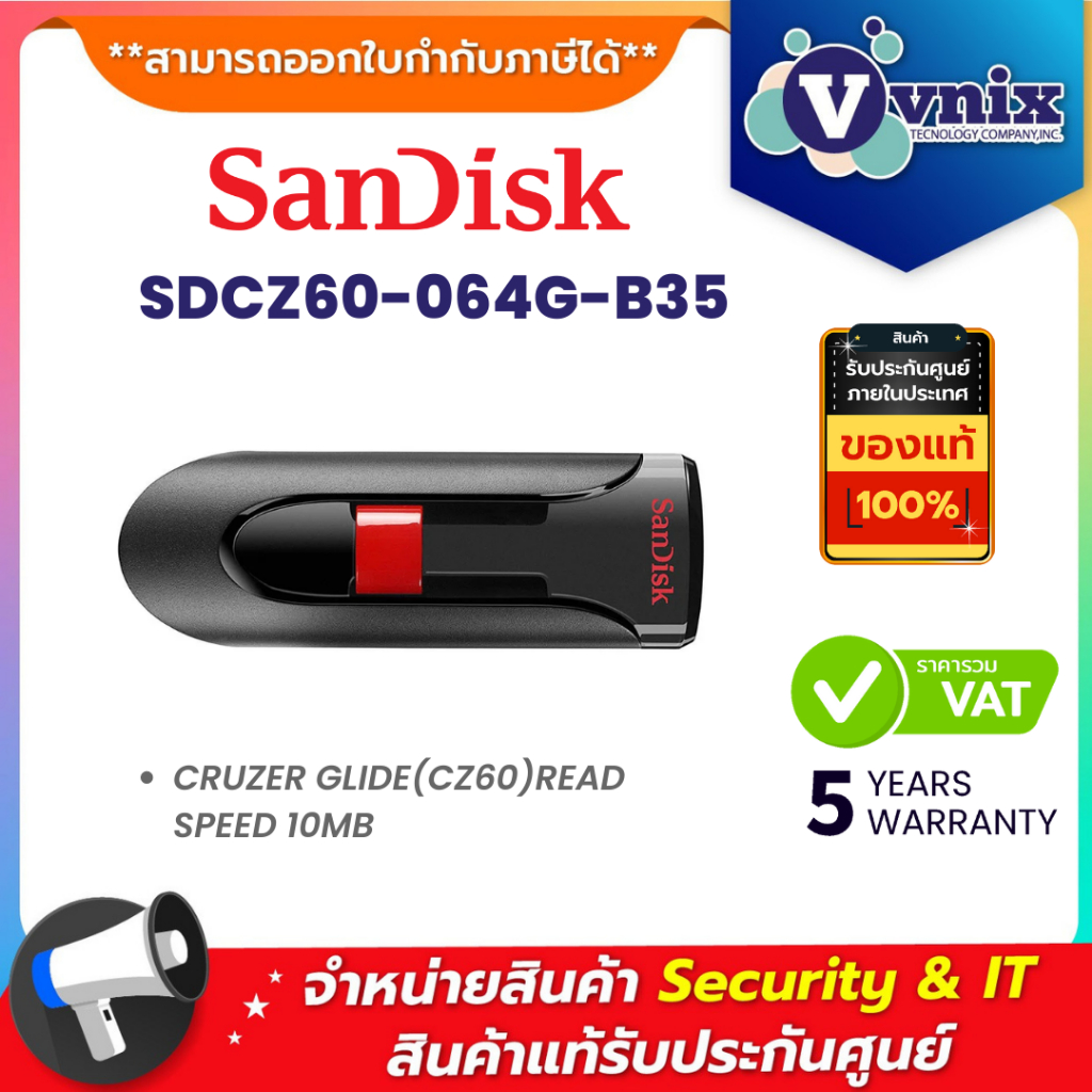 Sandisk SDCZ60-064G-B35 64 GB FLASH DRIVE (แฟลชไดร์ฟ) SANDISK CRUZER GLIDE By Vnix Group