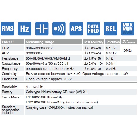 Sanwa PM300 Digital Multimeters Pocket Type True RMS, CAT.IV Pocket size DMM