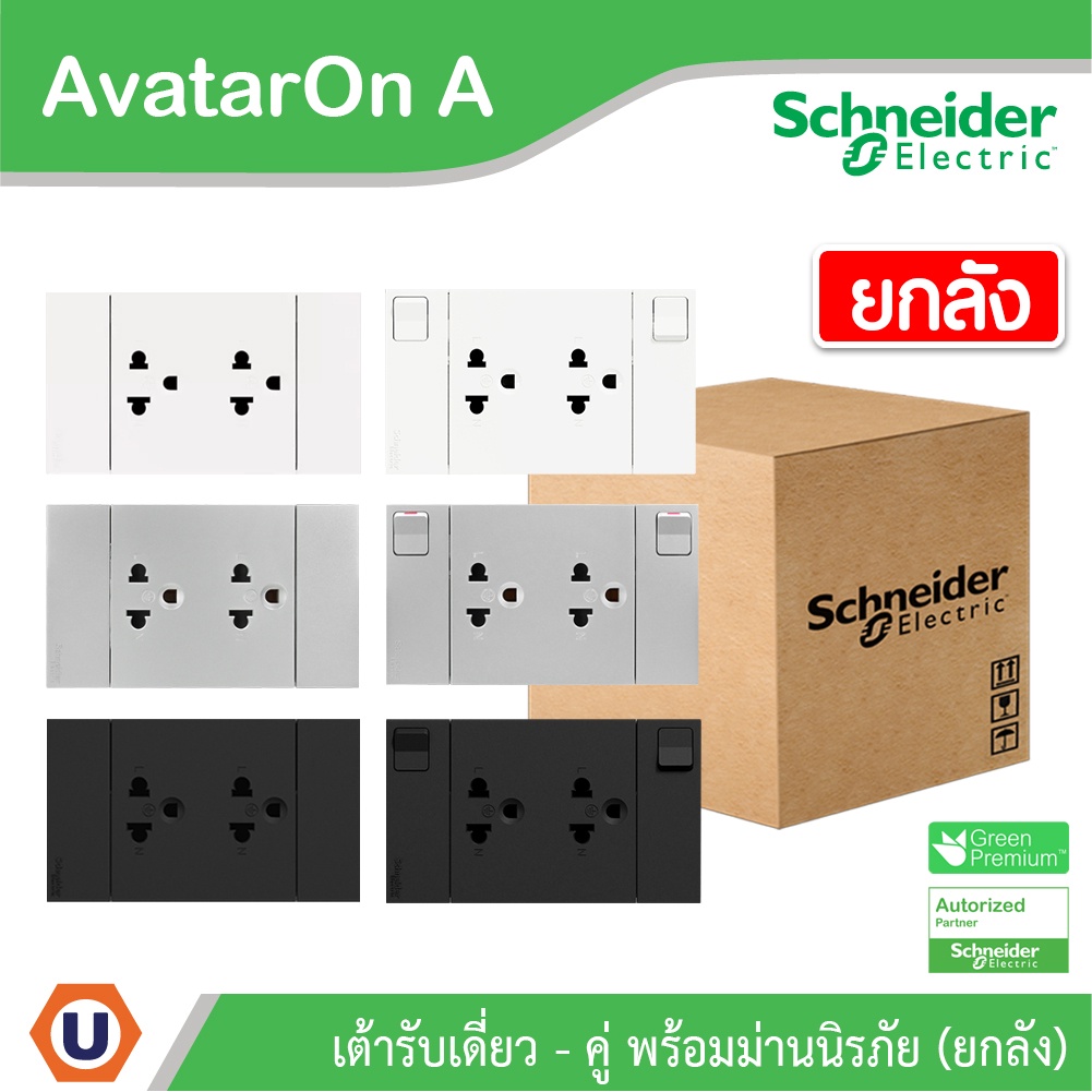 Schneider Electric เต้ารับคู่ 3ขา มีกราวด์ พร้อมม่านนิรภัย พร้อมสวิตซ์ |ยกลัง|สีขาว|สีเทา|สีดำ|Duplex Sockets|AvatarOn A