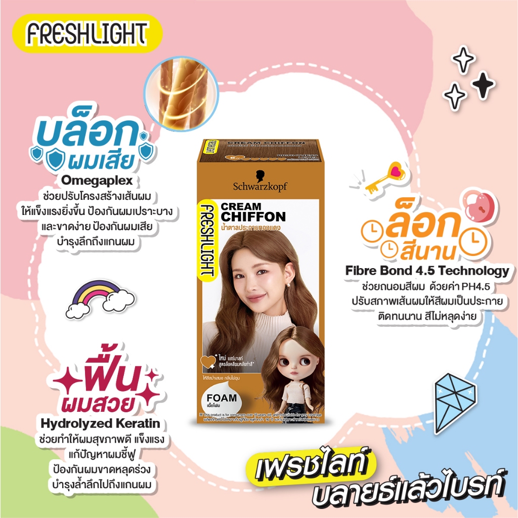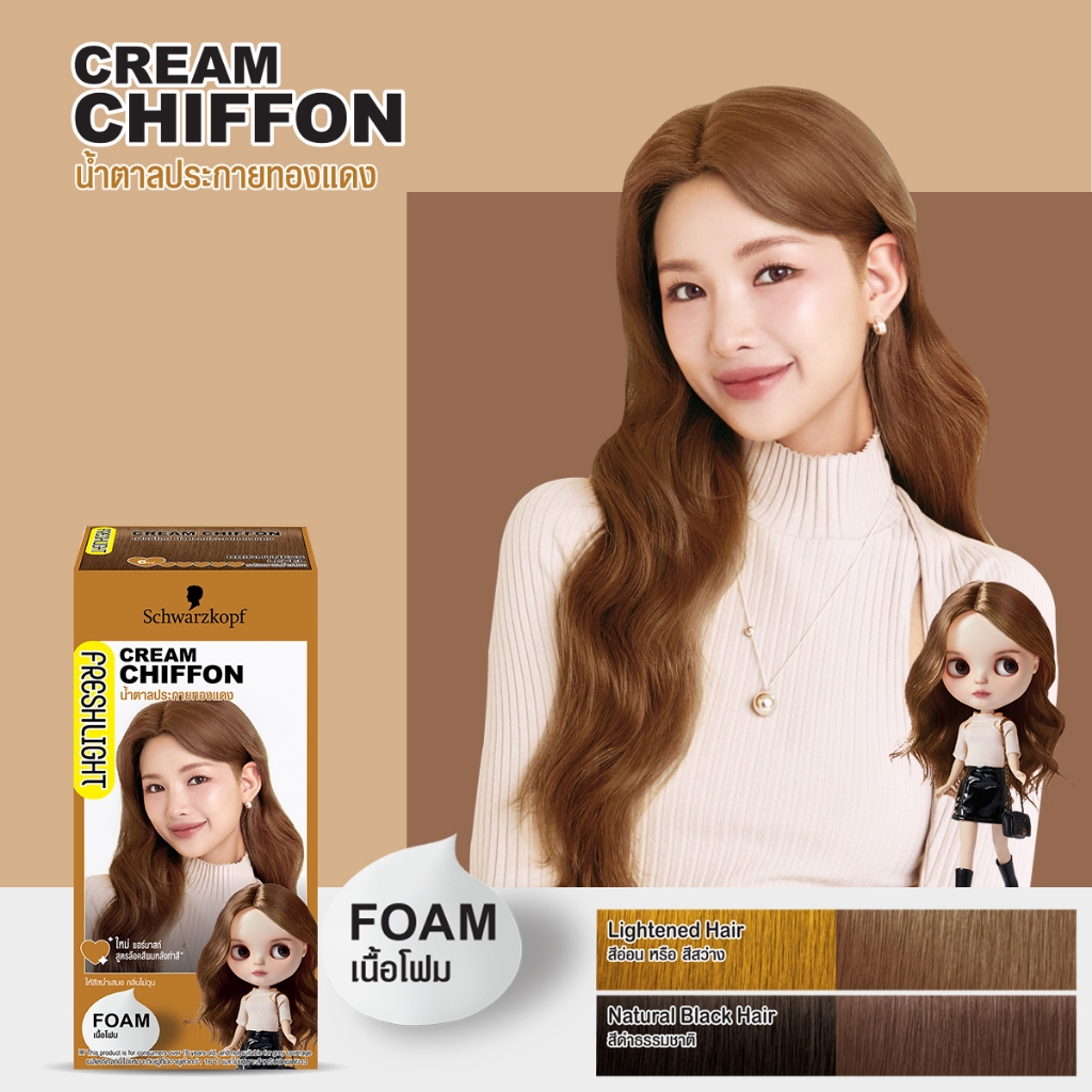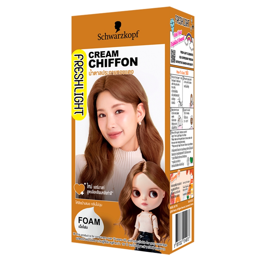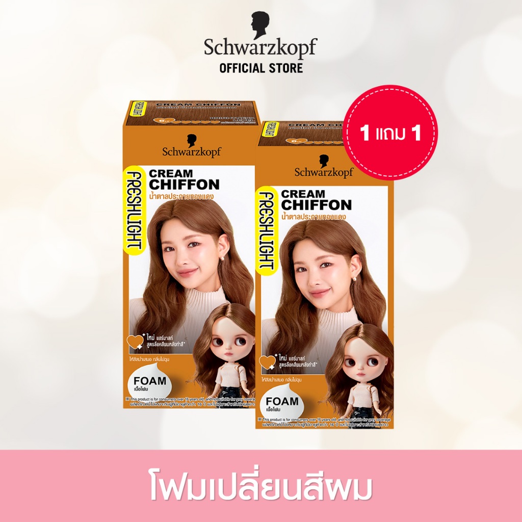 [1แถม1] Schwarzkopf Freshlight Foam Color CREAM CHIFFON โฟมเปลี่ยนสีผม สีน้ำตาลประกายทองแดง 1 กล ่อง