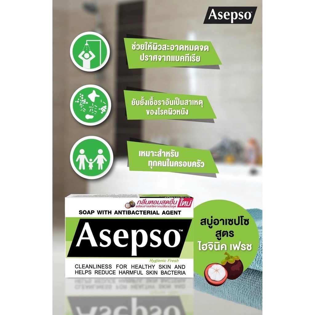 1 ก้อน Asepso Soap อาเซปโซ สบู่ก้อน ก้อนเดี่ยว ช่วยชำระล้างแบคทีเรียและเชื้อโรค 70/80g.