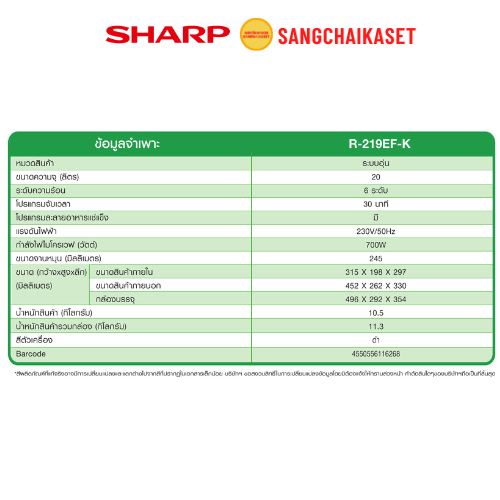 ไมโครเวฟ SHARP รุ่น R-219EF-K 20 ลิตร