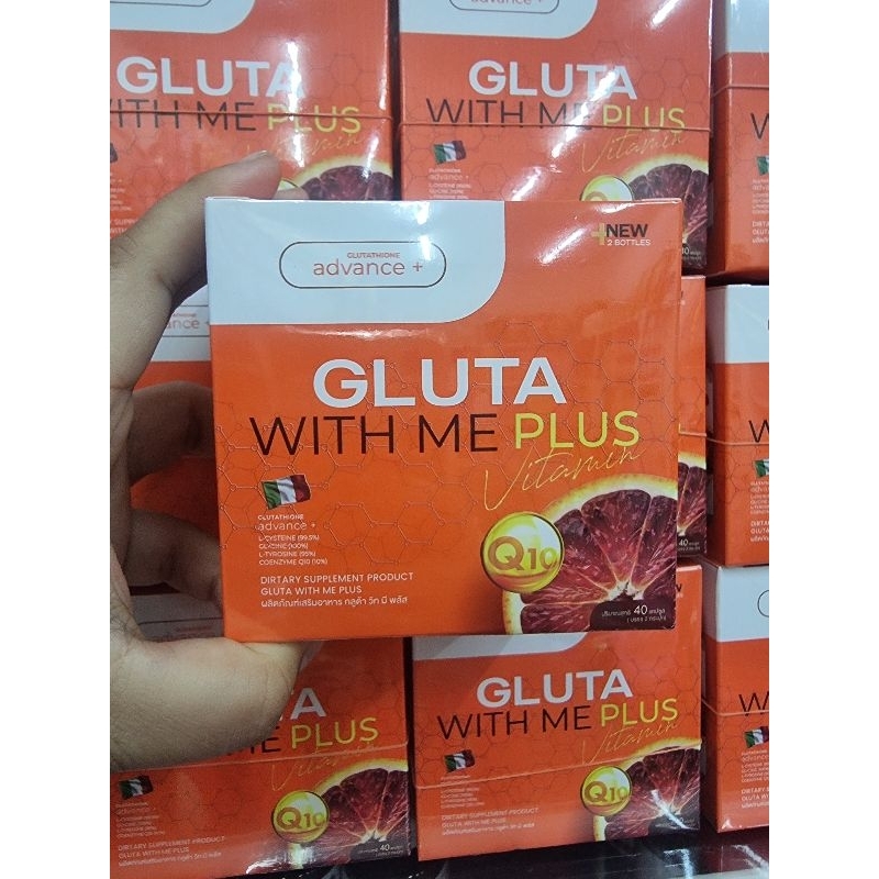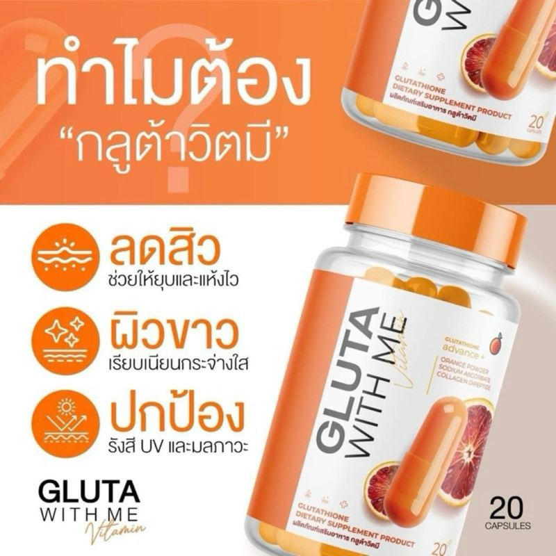Gluta with me 1 กล่องมี 2 ขวดกลูต้าวิทมี ลดสิว ผิวขาว ปกป้องผิวจากแสง UV