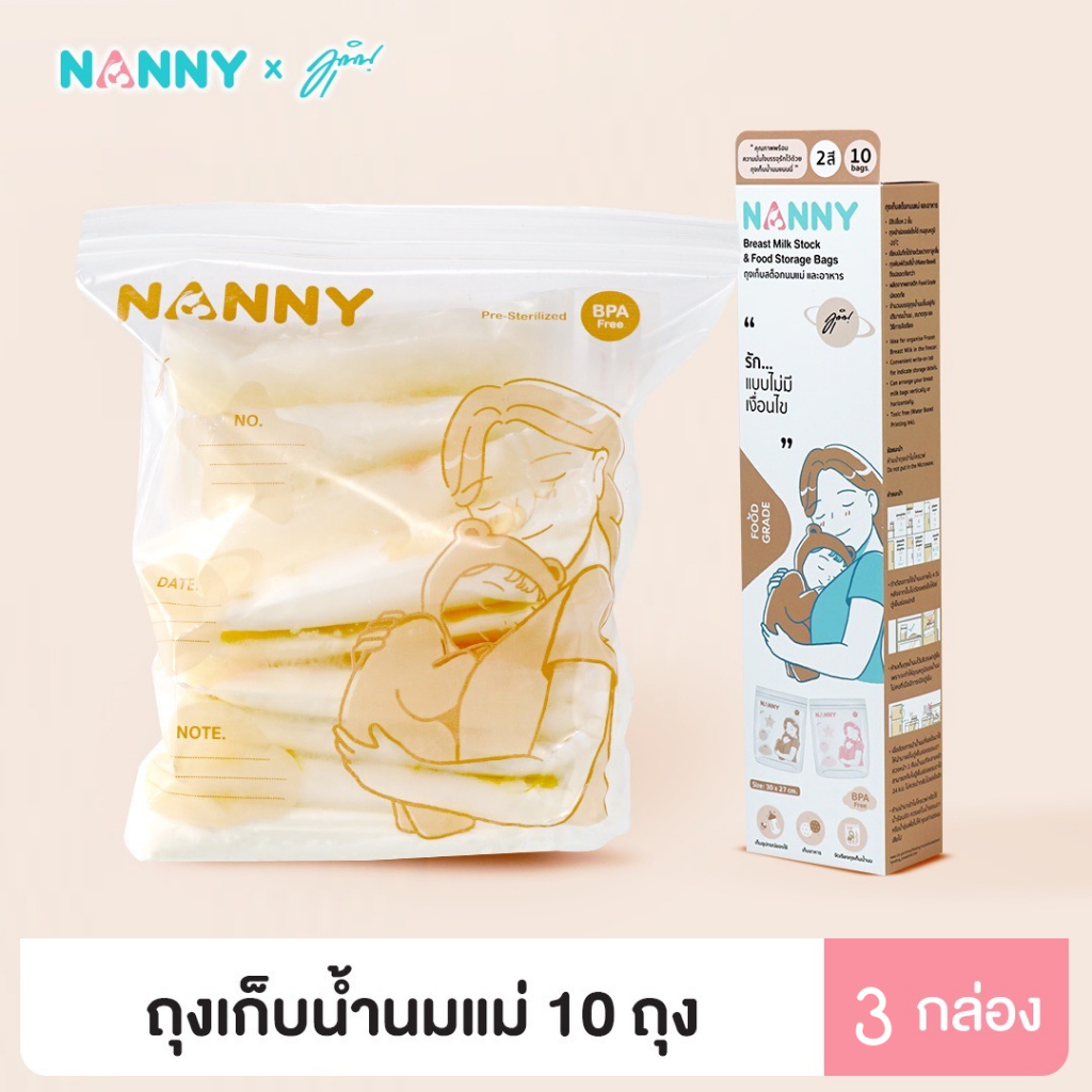 แนนนี่ ถุงจัดเรียงสต๊อกน้ำนมแม่ (บรรจุ 10 ใบ/กล่อง) - Nanny Breast Milk Storage Bags