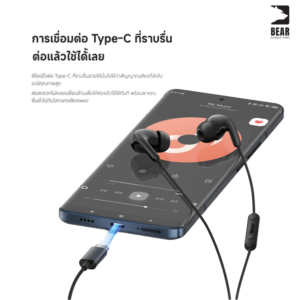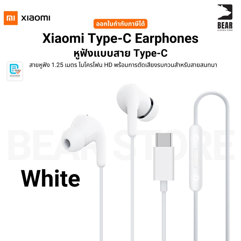 Xiaomi Type-C Earphones หูฟังแบบสาย Type-C คุณภาพเสีย งระดับ HD ตัดเสียงรบกวน รับประกันศูนย์ 6 เดือน