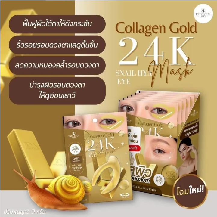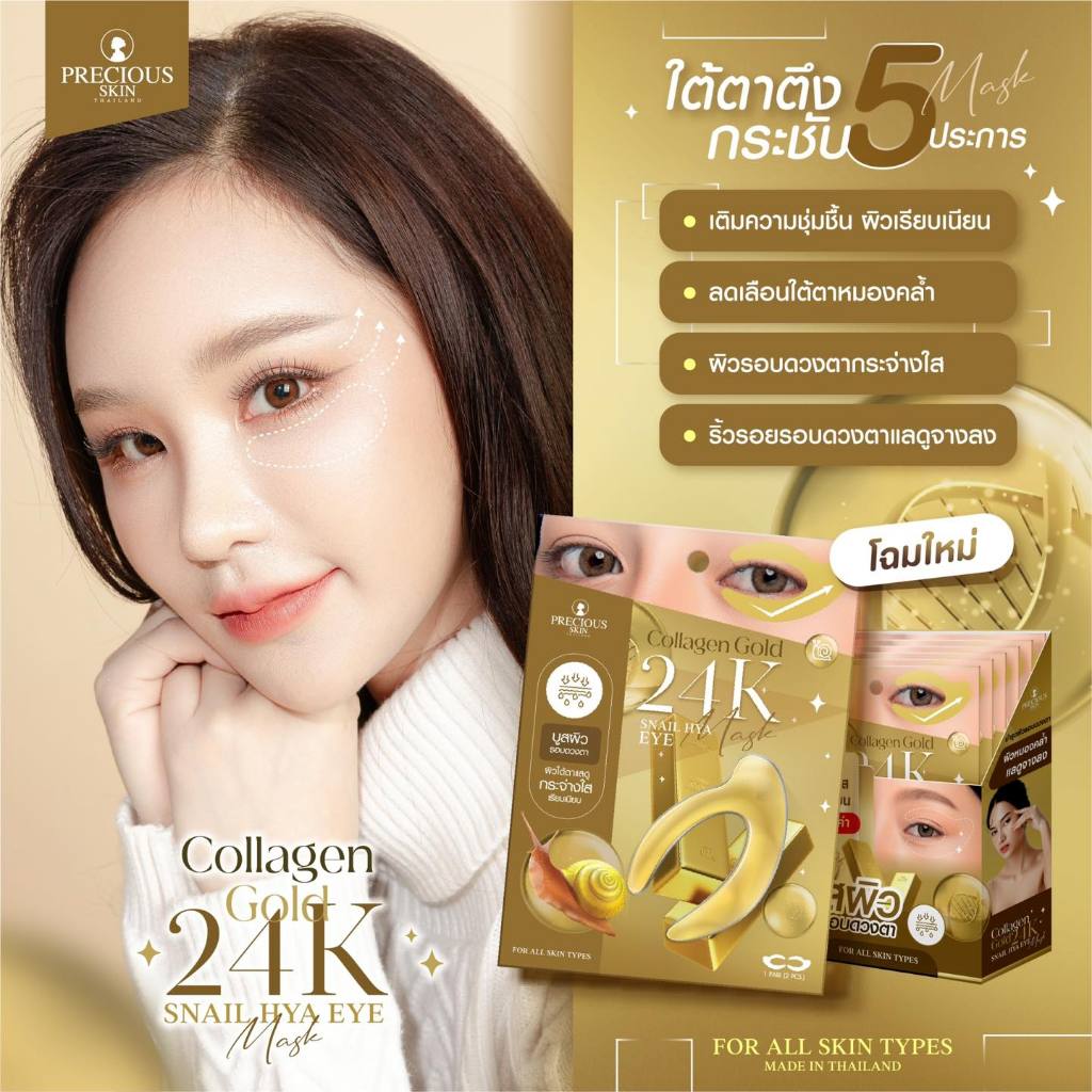 มาส์กใต้ตาทองคำ เพรชเชิส สกิน ไทยแลนด์ Precious Skin Thailand Collagen Gold 24K Snail Hya Eye Mask