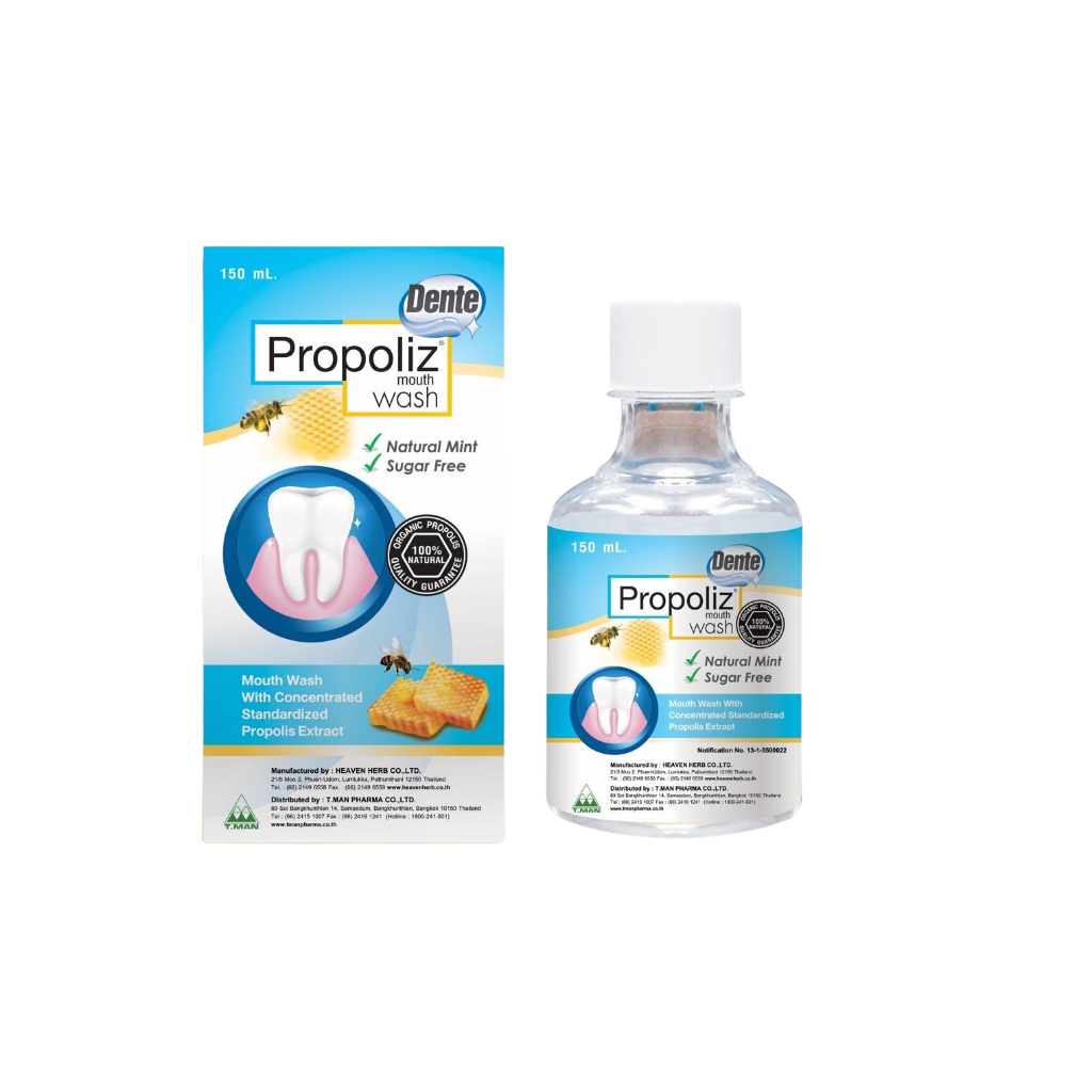 Propoliz Mouth Wash 150 ml. โพรโพลิส เมาท์ วอช น้ำยาบ้วนปาก ชุ่มคอ ลดการเจ็บคอ ปราศจากน้ำตาล #2051