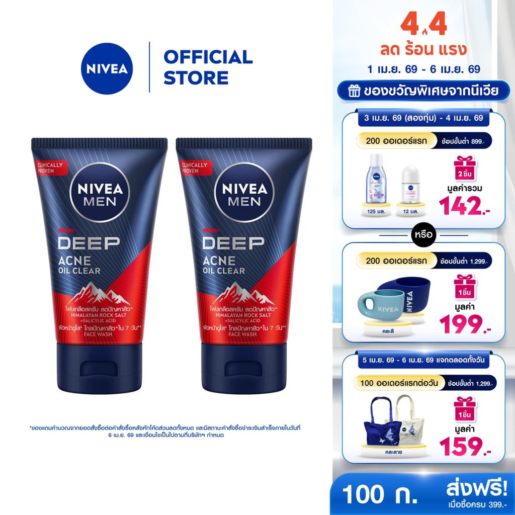 นีเวีย เมน ดีพ แอคเน่ ออยล์ เคลียร์ สครับ มัด โฟม 100 ก. 2ชิ้น NIVEA