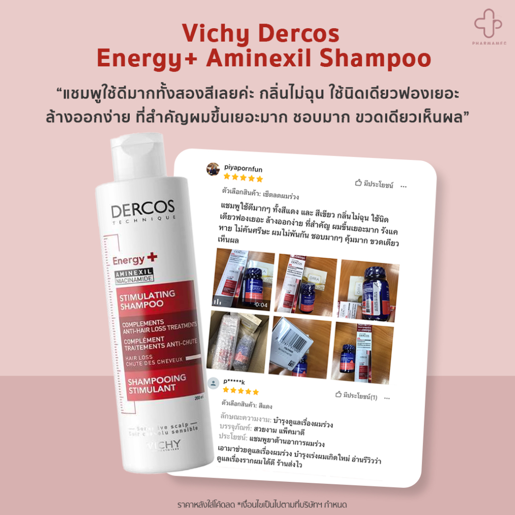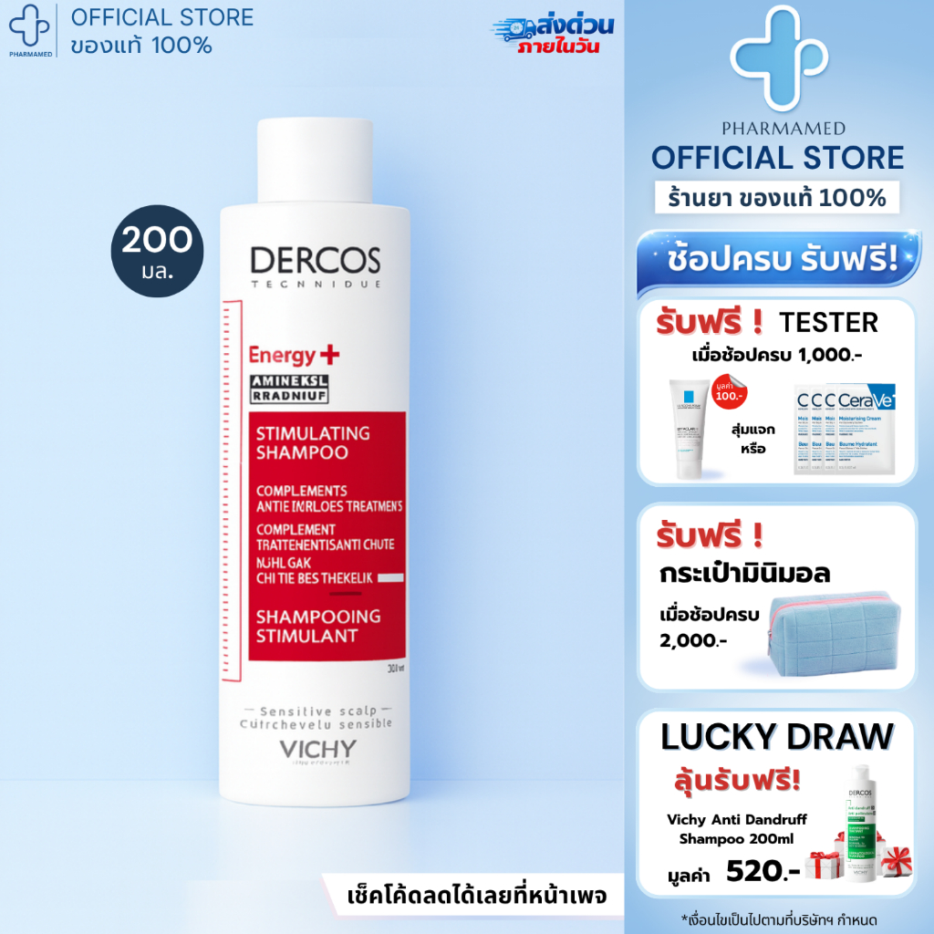 [ใส่โค้ดลดเหลือ🔥404.-] Vichy DERCOS Anti-Dandruff / Energy+ Aminexil Shampoo 200ml วิชี่ แชมพู ขจัดรังแค ลดผมขาดหลุดร่วง