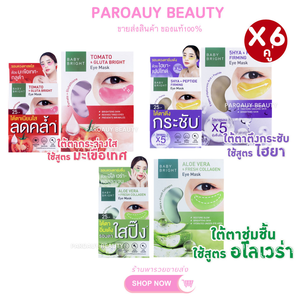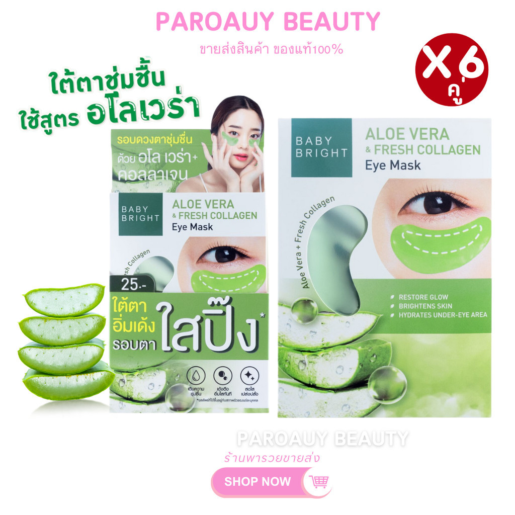 (1กล่อง/6คู่) บำรุงรอบดวงตา มาส์กตา อโลเวร่าแอนด์เฟรชคอลลาเจนอายมาส์ก BABY BRIGHT