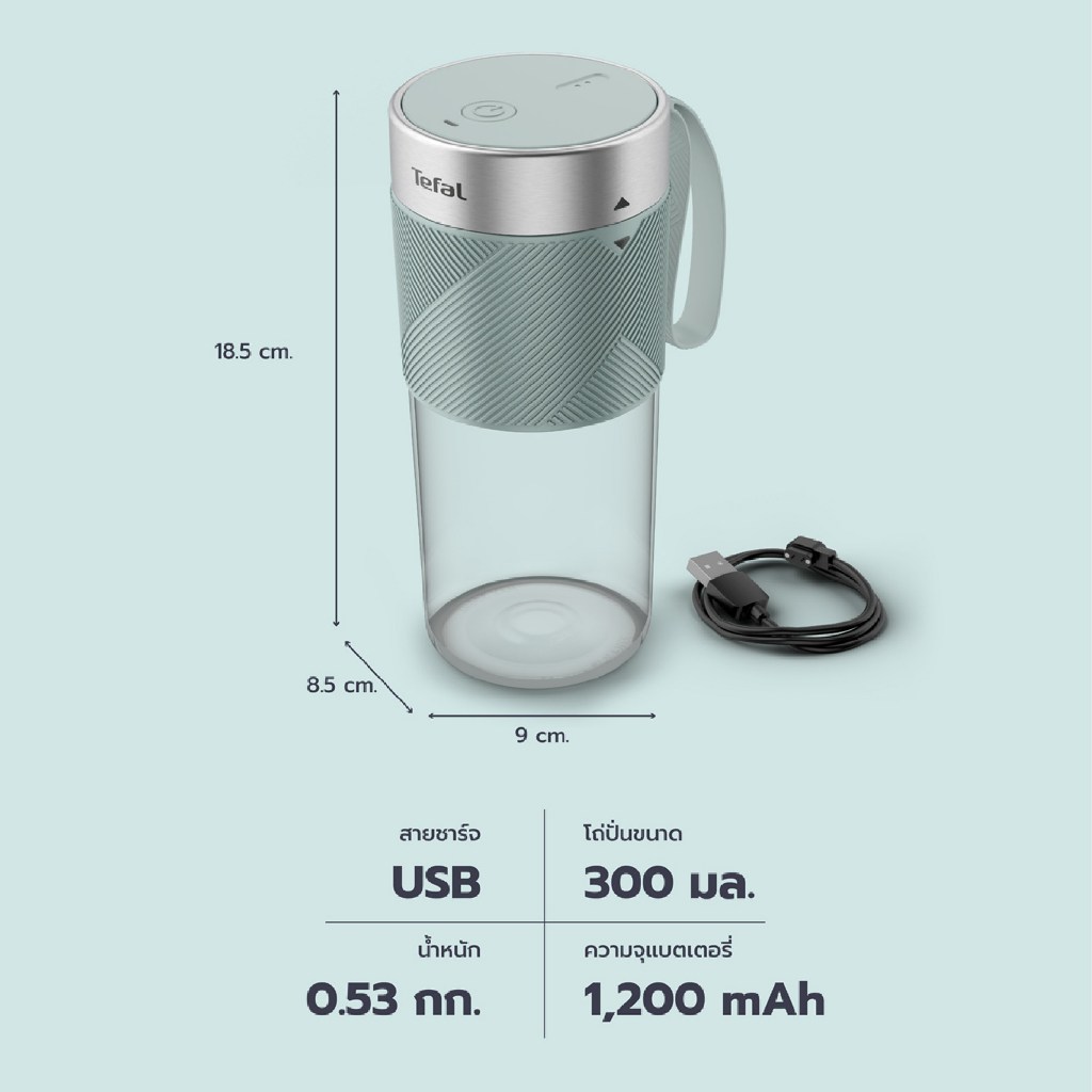 TEFAL เครื่องปั่นน้ำผลไม้แบบพกพา ความจุ 300 มล. รุ่น BL1C0430 สีเขียว