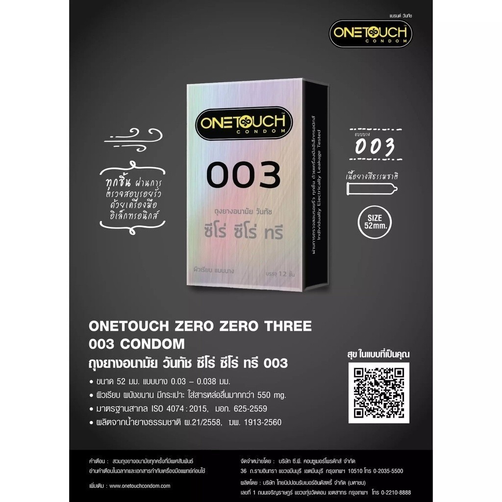 ลดเพิ่ม 30% 🔥 ถุงยางอนามัย Onetouch วันทัช เลือกแบบได้ แท้ 100% One touch ขนาด 49 - 56 มม