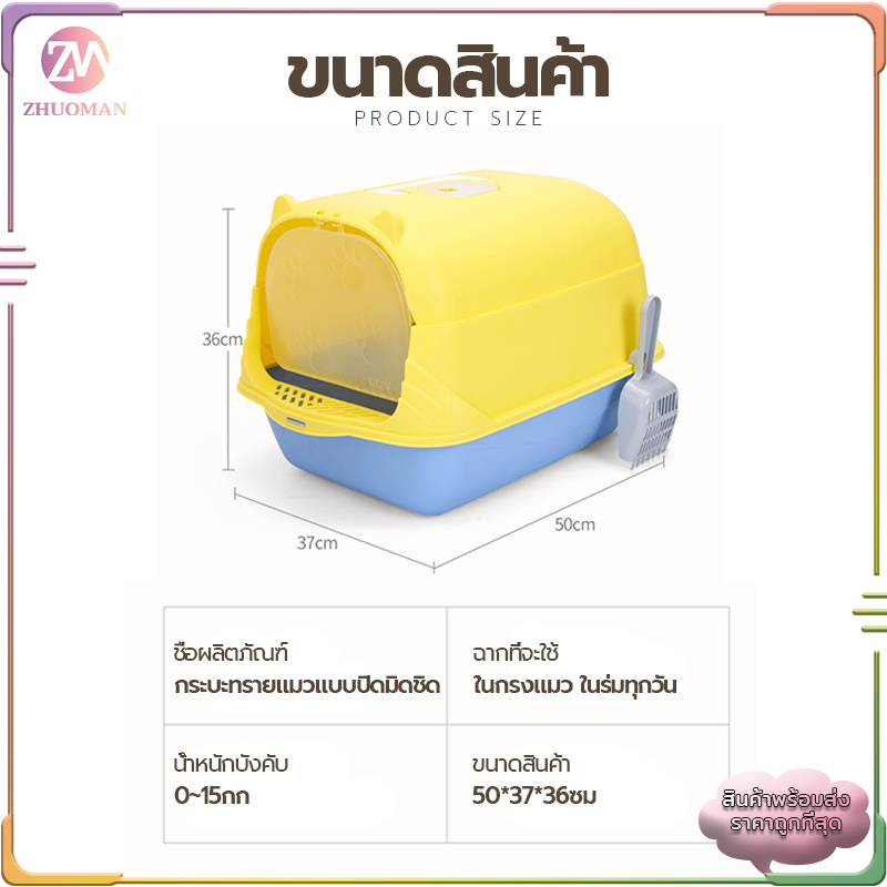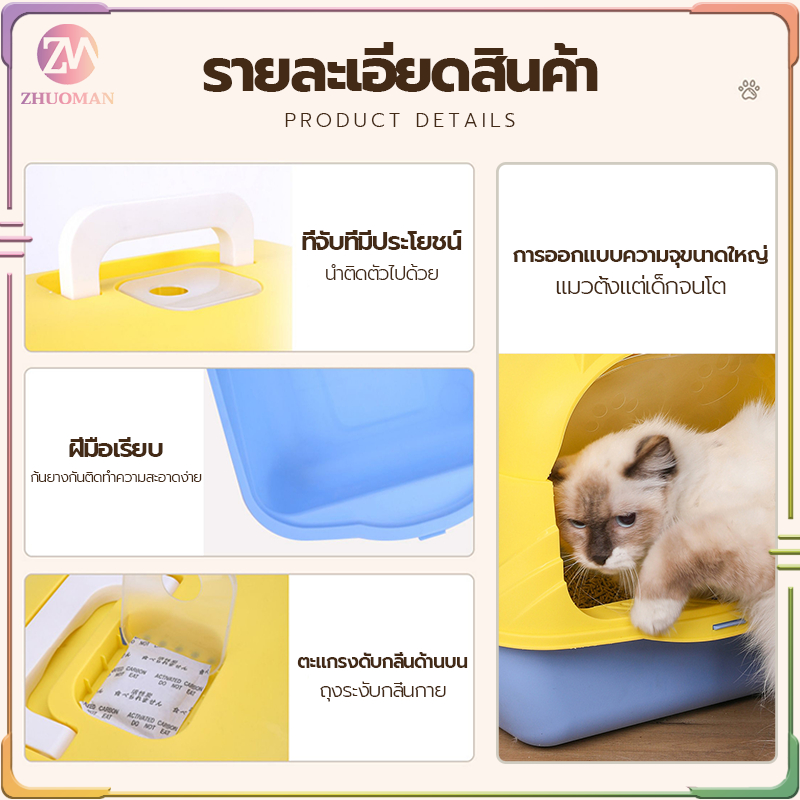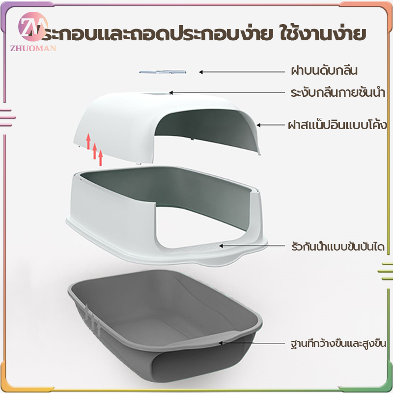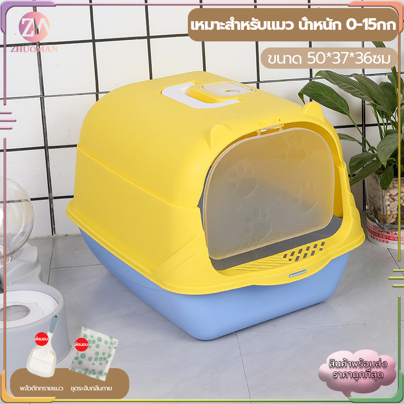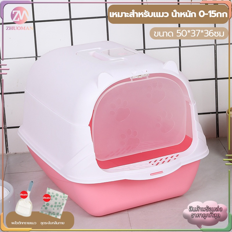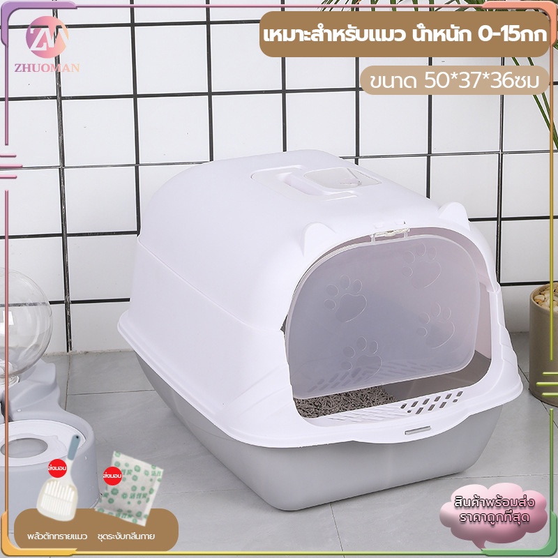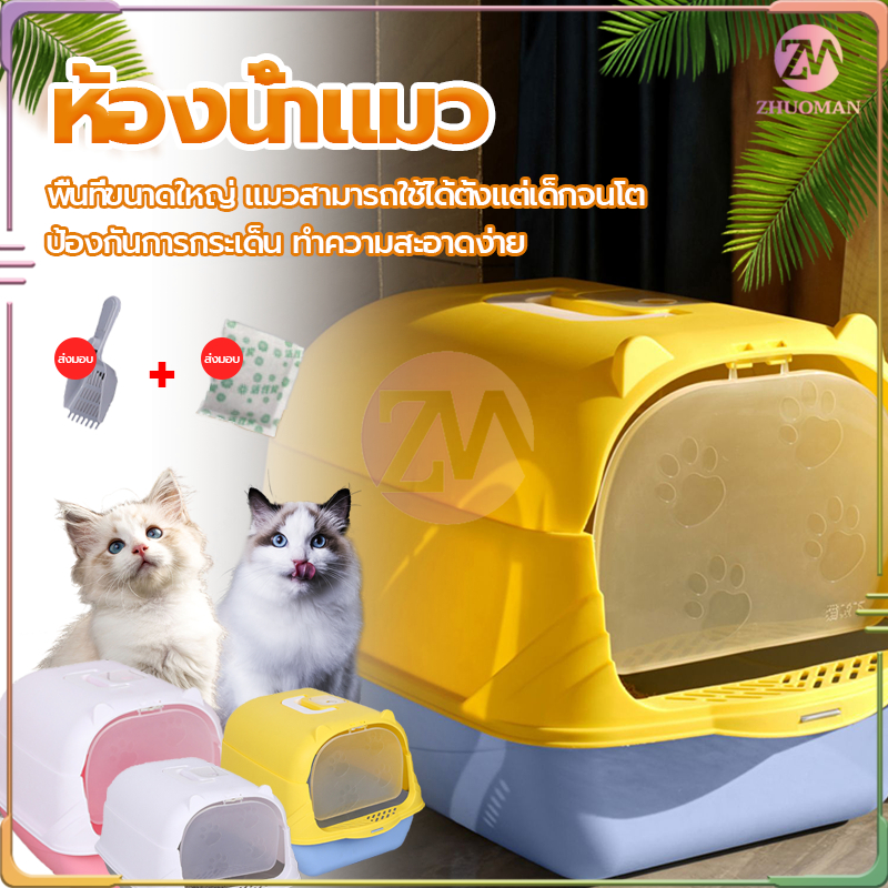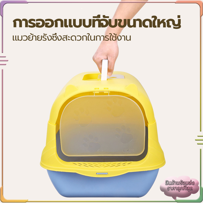 ห้องน้ำแมว กระบะทรายแมวพกพา กะบะทรายแมว/กระบะทรายแมวขนาดใหญ่ แถมพลั่วตักทรายแมวและถุงดับกลิ่น แยกกลิ่น