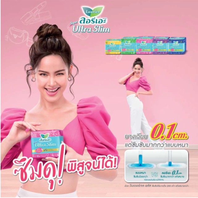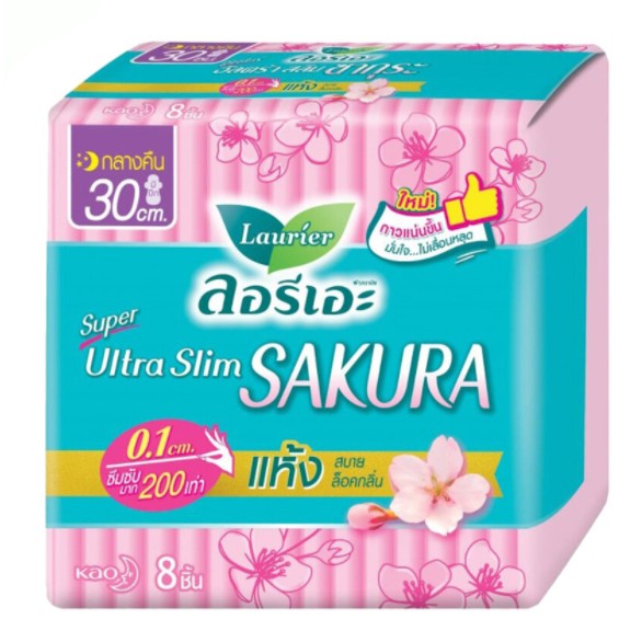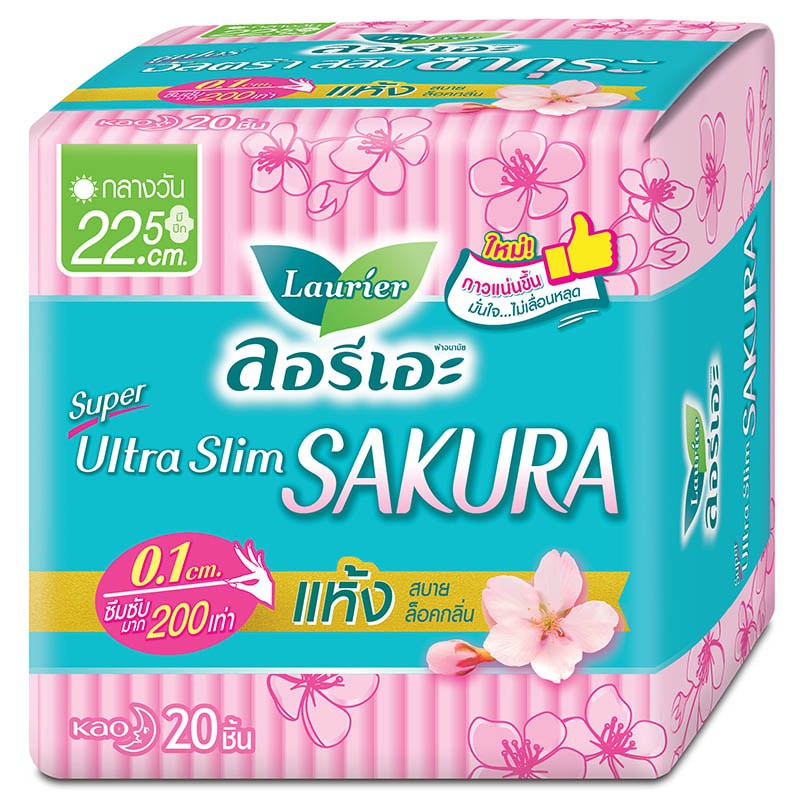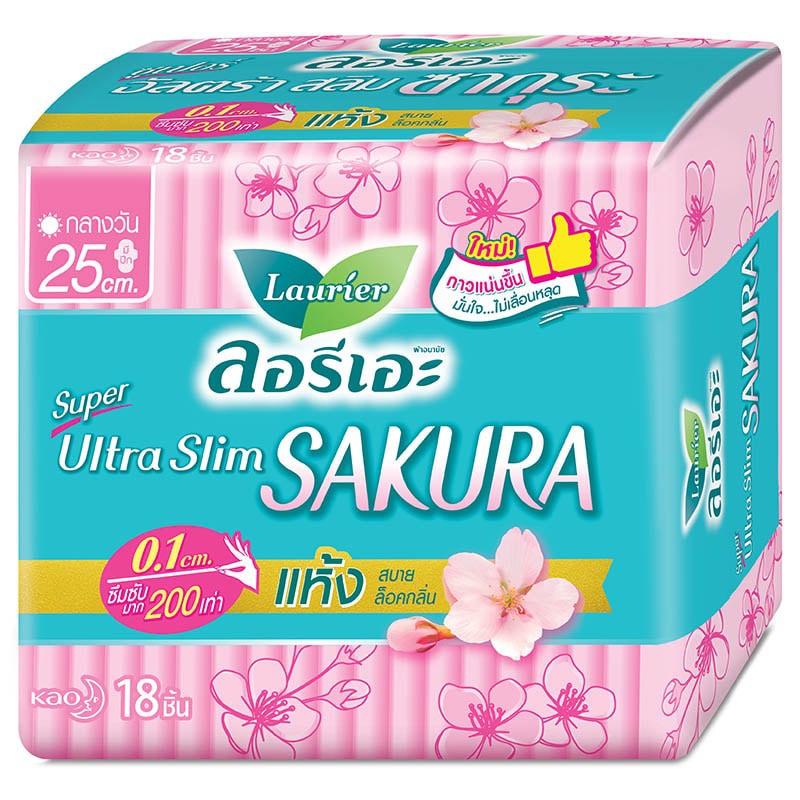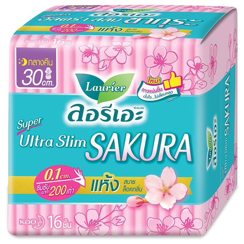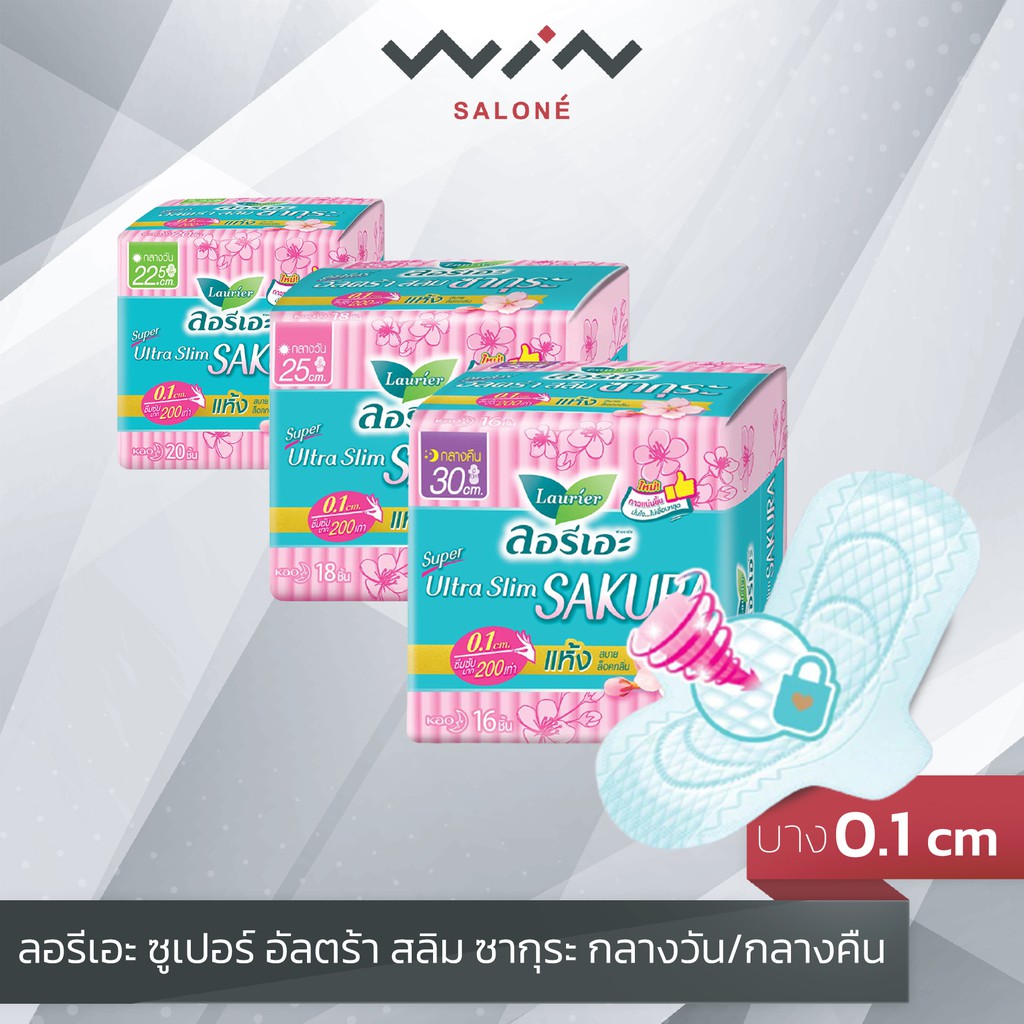 ลอรีเอะ ซูเปอร์ อัลตร้า สลิม ซากุระ ผ้าอนามัย แบบบางเฉียบ 0.1 cm. (กลางวัน / กลางคืน) ซึมซับมาก 200 เท่า