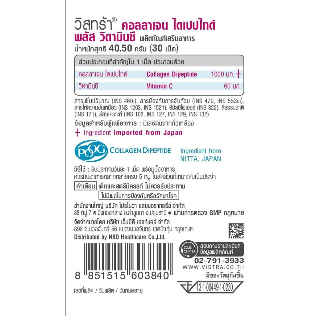 Vistra วิสทร้าคอลลาเจนไดเปปไทด์พลัส