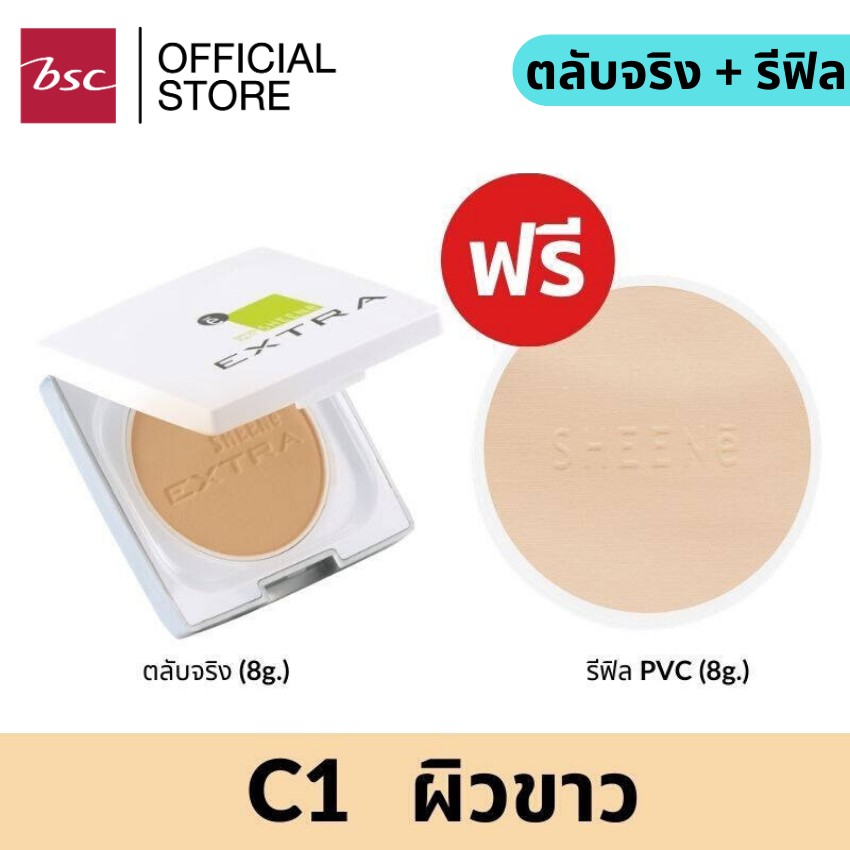 [ ซื้อ 1 แถม 1 ] SHEENE OIL FREE EXTRA CAKE POWDER SPF 25 PA++ ตลับจริง + รีฟิล แป้งผสมครีมรองพื้นสูตรพิเศษ