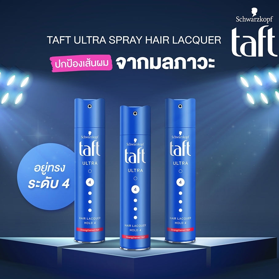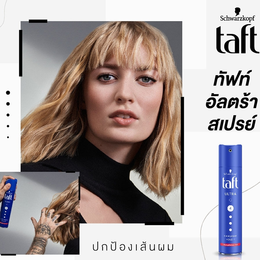 (1 ขวด) Schwarzkopf Taft Ultra 4 Hairspray (น้ำเงิน) ชวาร์สคอฟ ทัฟท์ อัลทิเมท แฮร์สเปรย์ (250 ml.)