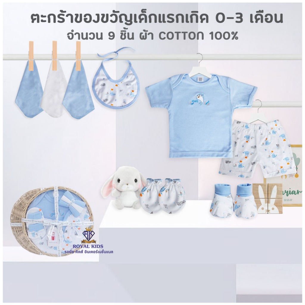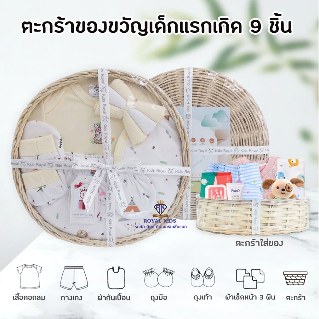 BP0014 ชุดของขวัญ เสื้อผ้าสำหรับเด็ก ตะกร้าของขวัญเด็กแรกเกิด 9 ชิ้น กิ๊ฟเซตเยี่ยมคลอด ของฝากให้กับคุณพ่อ คุณแม่