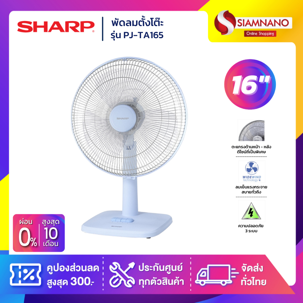 พัดลมตั้งโต๊ะ Sharp รุ่น PJ-TA165 ขนาด 16 นิ้ว (รับประกันนาน 3 ปี)