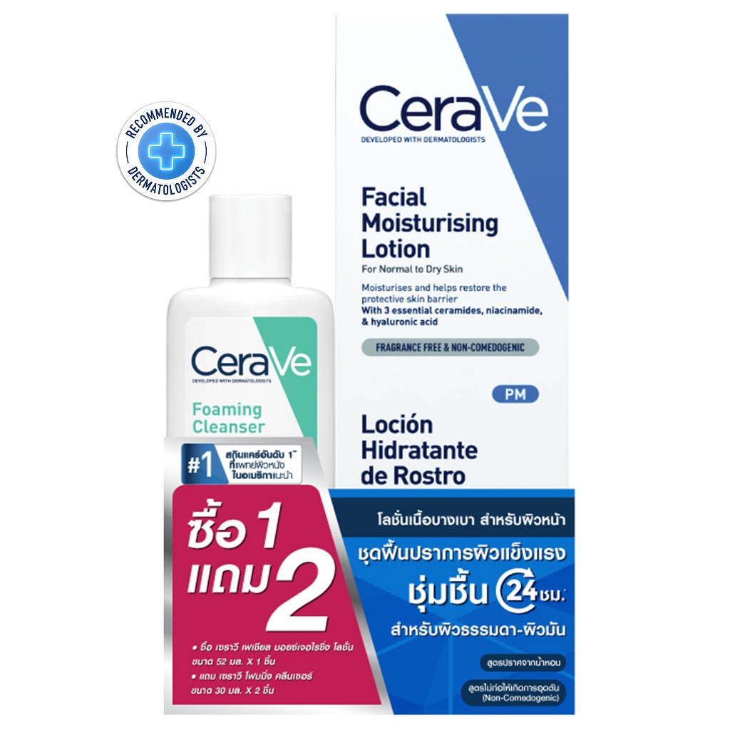 CERAVE - PM Moist Lotion 52ml+foaming cleanser 30MLx2 เซราวี เซ็ตผลิตภัณฑ์ดูแลผิวหน้า