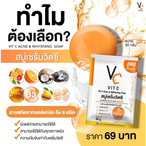 ส่งฟรี/มีไลฟ์ สบู่เซรั่มวิตซี (30g) สบู่วิตซีน้องฉัตร สบู่วิตซี Vit C Ance &Whitening soap Vitcsoap VCsoap