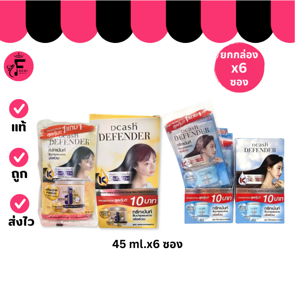 (กล่อง 6 ซอง) Dcash Defender Keratin 3D Extra Shine Hair Treatment ทรีทเม้นท์ ดีแคช 2 สูตร(45 ml.)