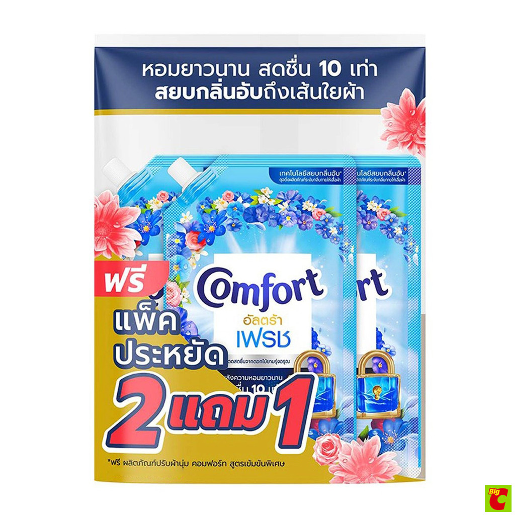 คอมฟอร์ท อัลตร้า เฟรช ผลิตภัณฑ์ปรับผ้านุ่ม สูตรเข้มข้นพิเศษ สีฟ้า 470 มล. แพ็ค 2+1