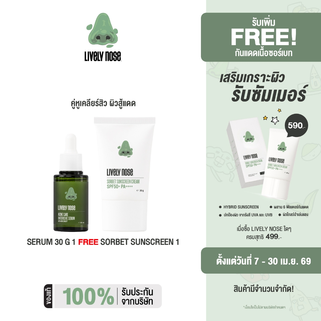 Nakiz [Set คู่] เซรั่มจมูกเขียว + ผลิตภัณฑ์กันแดด - Lively Nose Acne Care Intensive Serum + Lively Nose Sobet Sunscreen