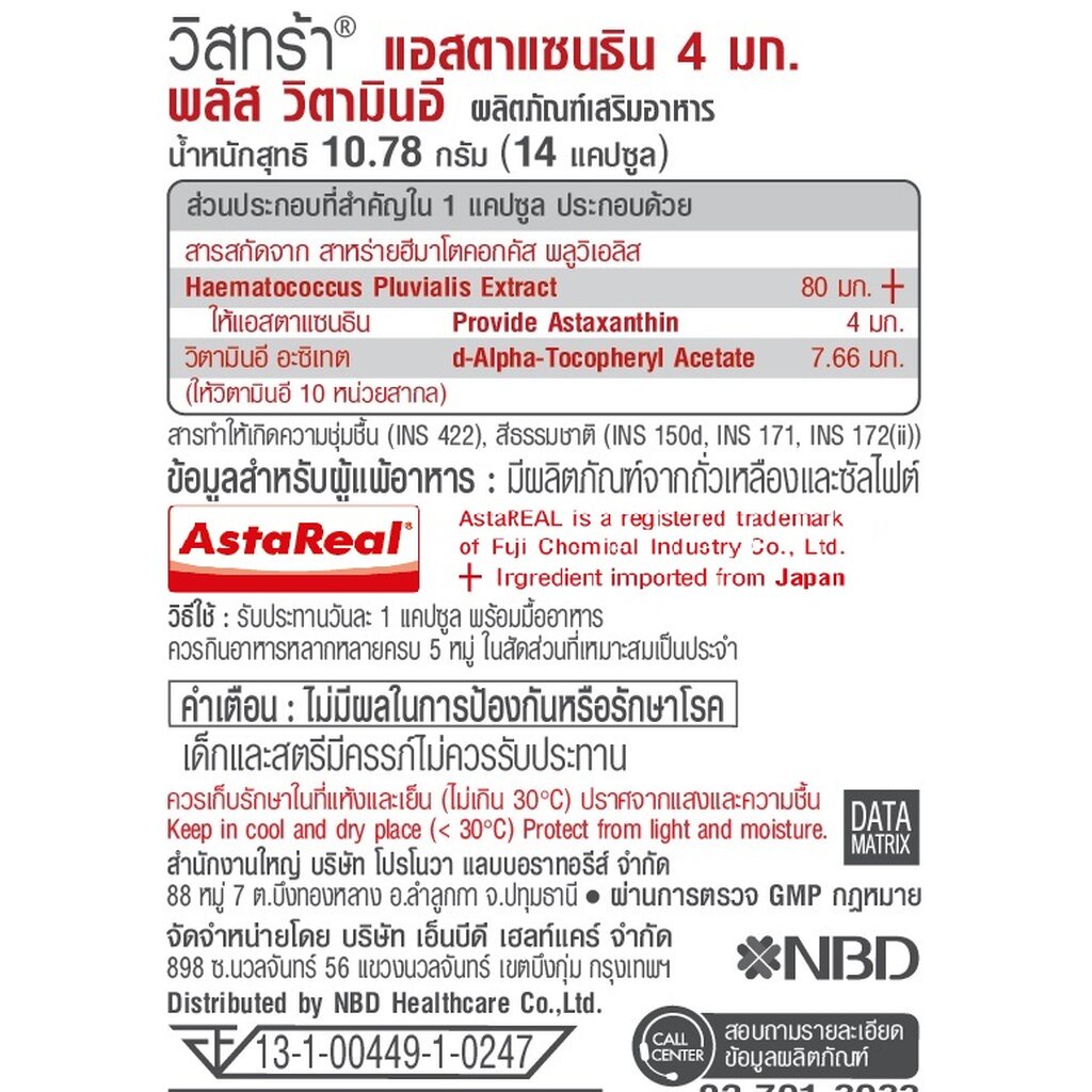 Vistra VISTRA Astaxanthin วิสทร้า แอสตาแซนธิน 4 มก. พลัส วิตามินอี 14 แคปซูล