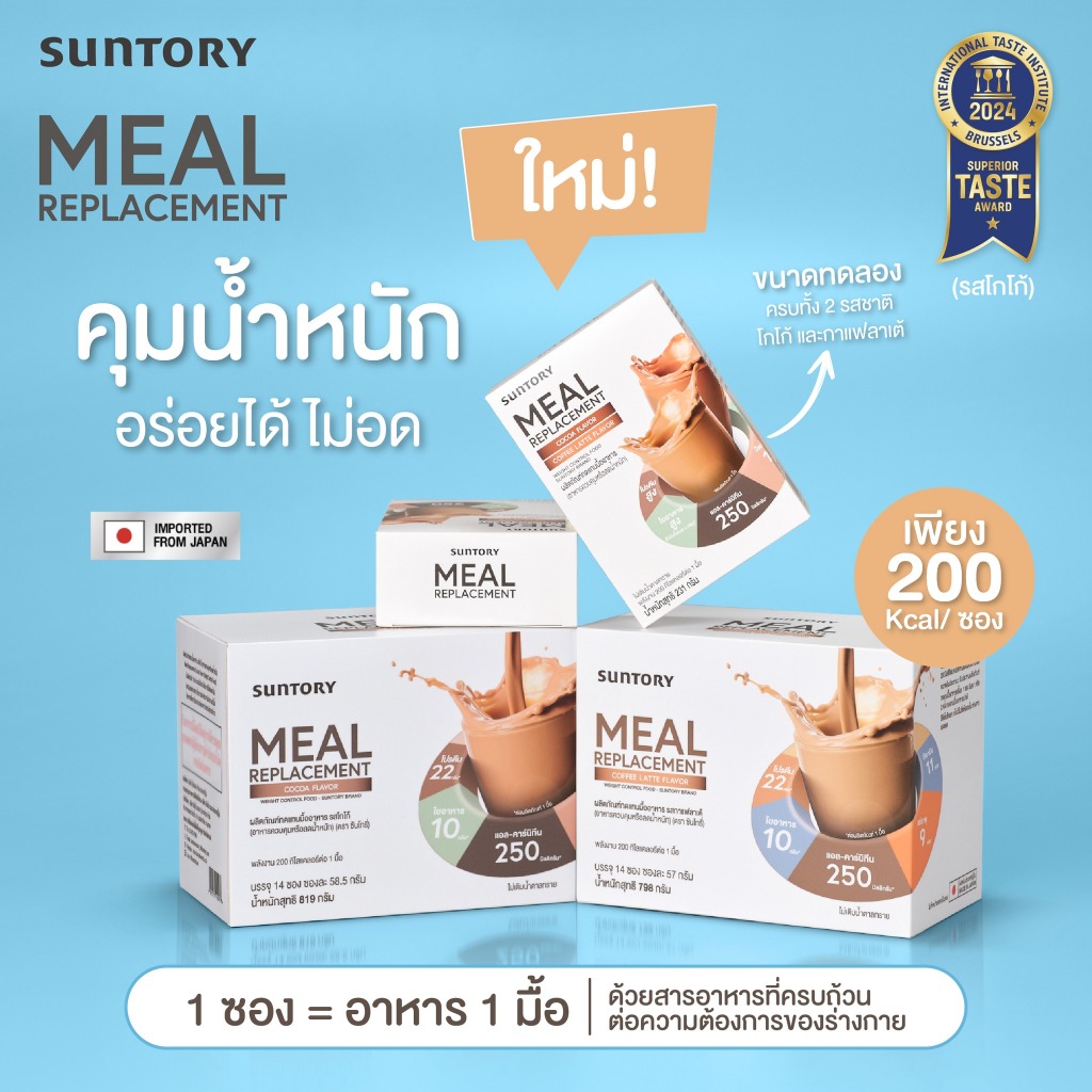 Suntory Meal Replacement Cocoa/Coffee Latte Flavor ซันโทรี่ โกโก้/คอฟฟี่ ลาเต้ [4 ซอง] ผลิตภัณฑ์ทดแทนมื้ออาหาร