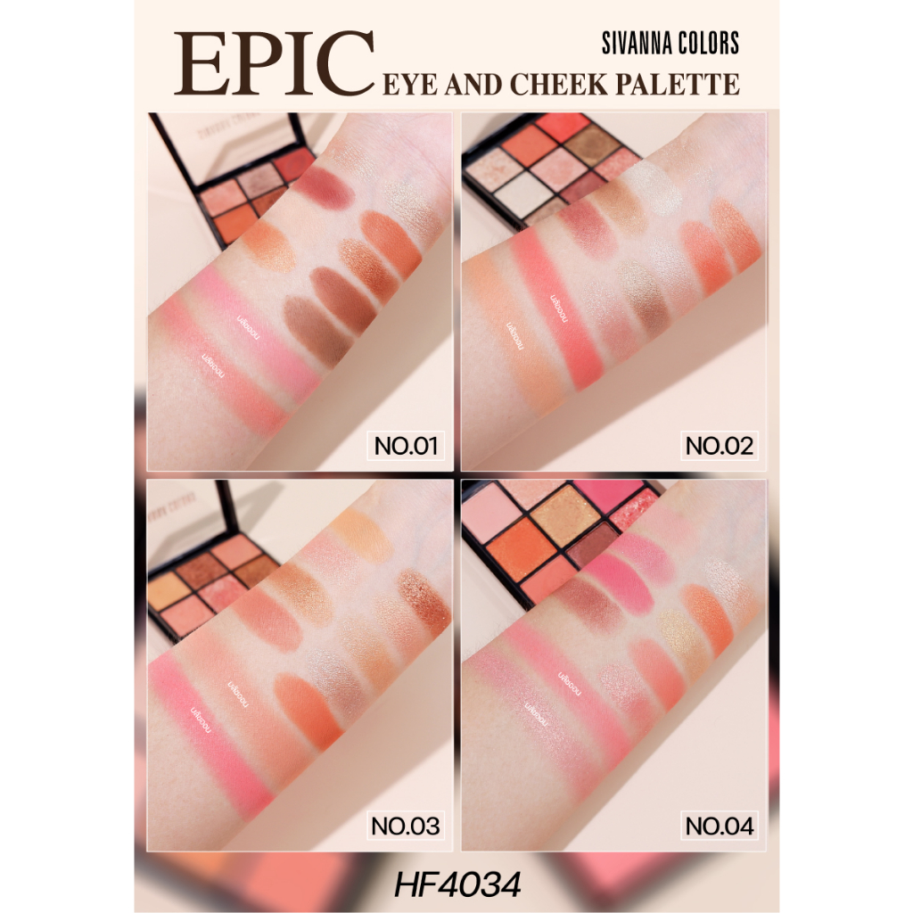 สิวันนา พาเลทแต่งหน้า อายแชโดว์ + บลัชออน พร้อมกระจกในตัว 20g HF4034 Sivanna Colors Epic Eye And Cheek Palette