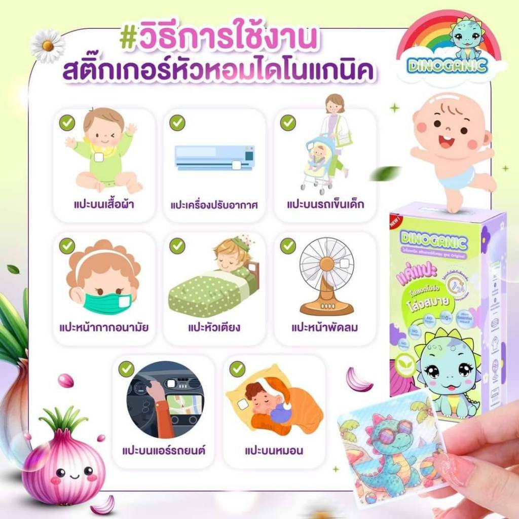 DINOGANIC ไดโนแกนิค น้ำมันหอมแดง เซรั่มหอมแดง สติกเกอร์หัวหอม สติกเกอร์กันยุง แก้หวัด คัดจมูก หายใจโล่ง สำหรับเด็ก