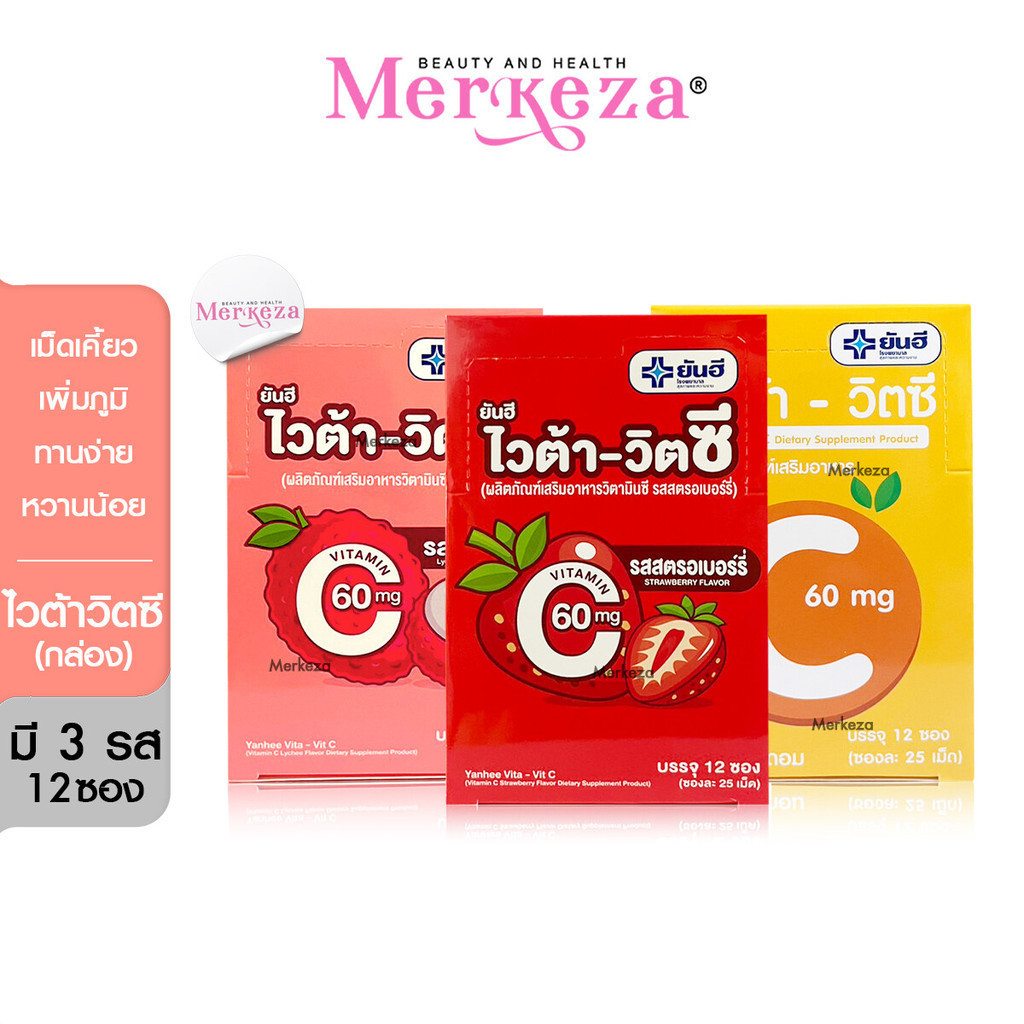 [SALE][ยกกล่อง12ซอง] Yanhee Vita VitC VitaminC ยันฮี ไวต้า วิตซี สำหรับเด็ก เม็ดเคี้ยว รสส้ม รสลิ้นจี่ สตรอว์เบอร์รี่