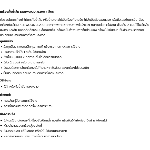 เครื่องคั้นน้ำส้ม KENWOOD JE290 1 ลิตร