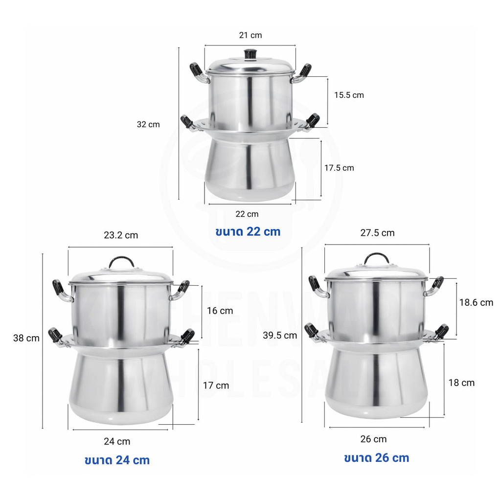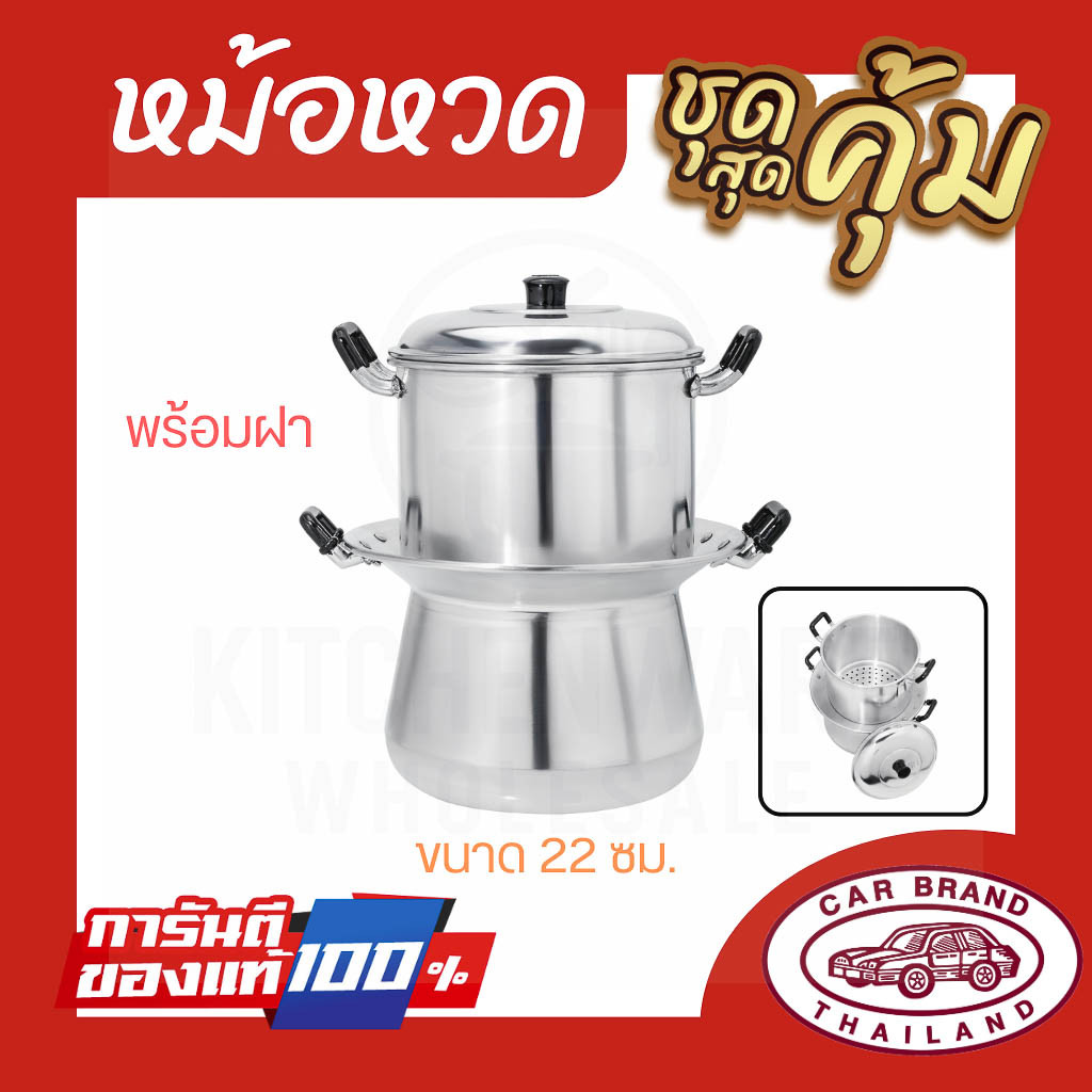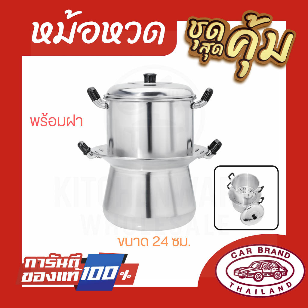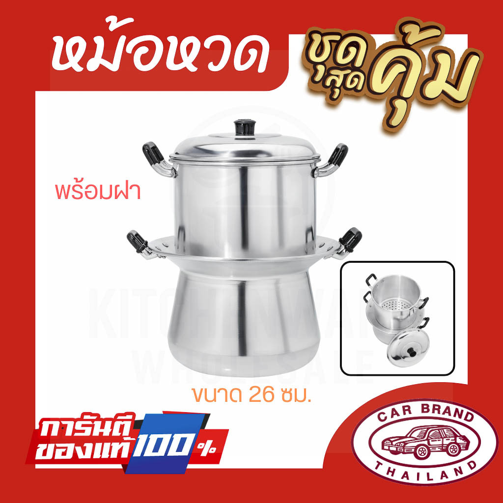 หม้อหวดอลูมิเนียม ตรารถยนต์ 22-24-26 ซม. หม้อนึ่งไทย หม้อนึ่งข้าวเหนียว หม้อหวด อลูมิเนียม AW364