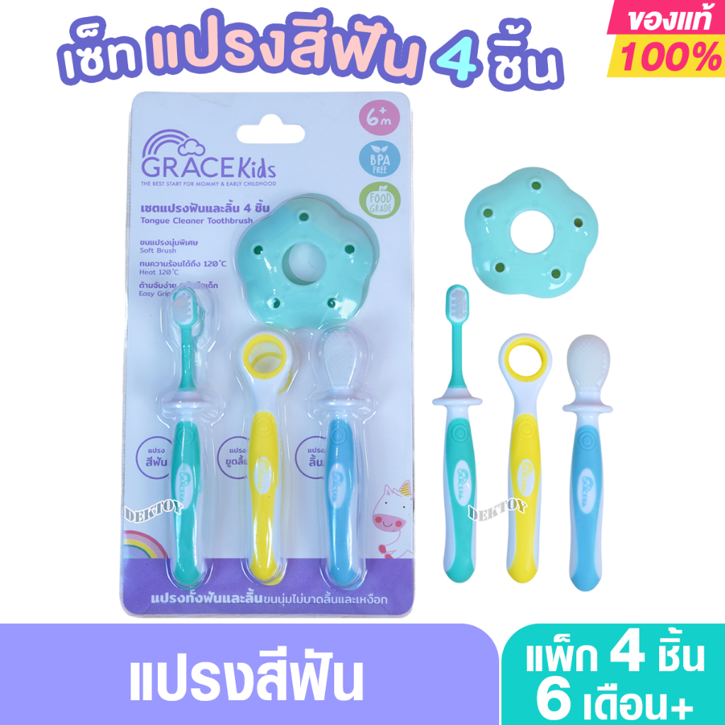 Grace kids เกรซคิดส์ เซ็ทแปรงฟันและลิ้น 4 ชิ้น 6เดือนขึ้นไป