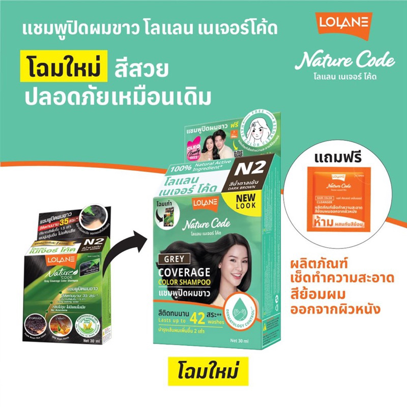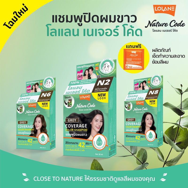 Lolane nature code แชมพูปิดผมขาว N1-9,สีแฟชั่นF1-3 ปริมาณ30มล