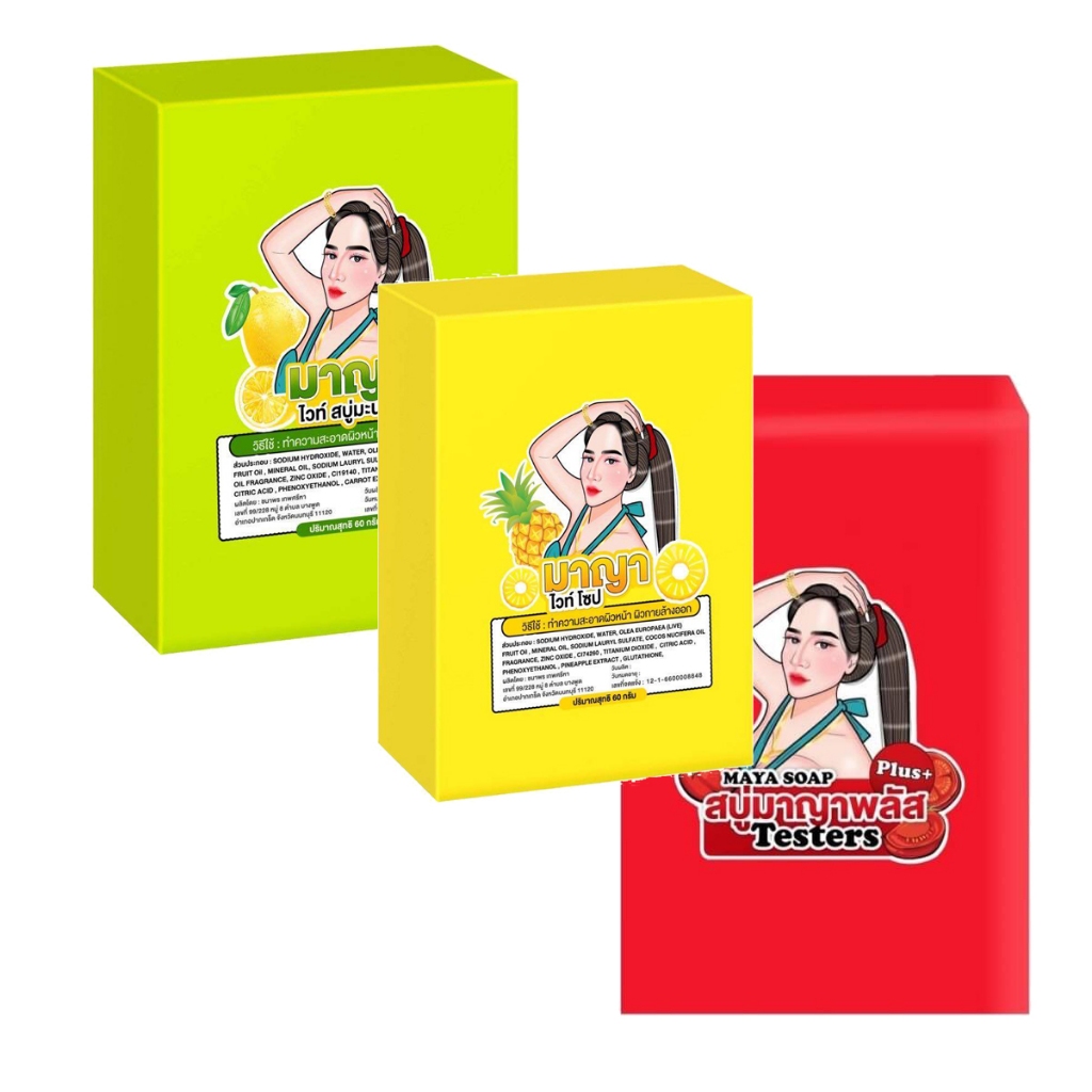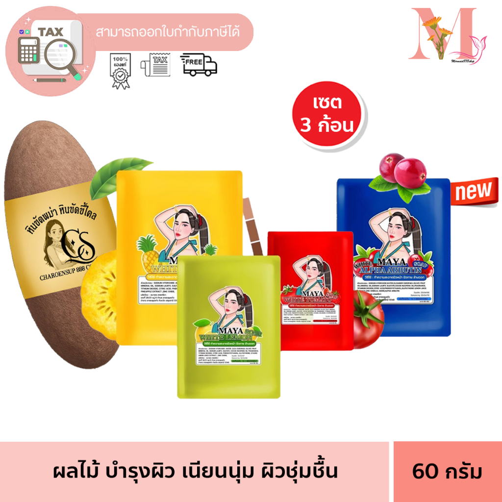 (3ก้อน คละสี) มายา มาญา สบู่มาญา MAYA สบู่ ทำความสะอาดผิวกาย 60 กรัม คละสูตร